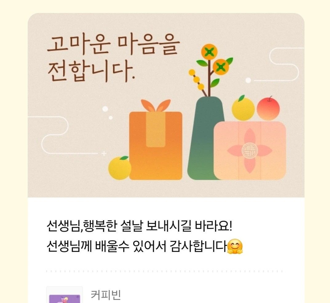 설날이 가까워오자, 어머님들께서 연락을 참 많이 주셨습니다. 어머님들께서 건네시는 따뜻한 말씀들에 정말 감사하고, 행복했습니다.