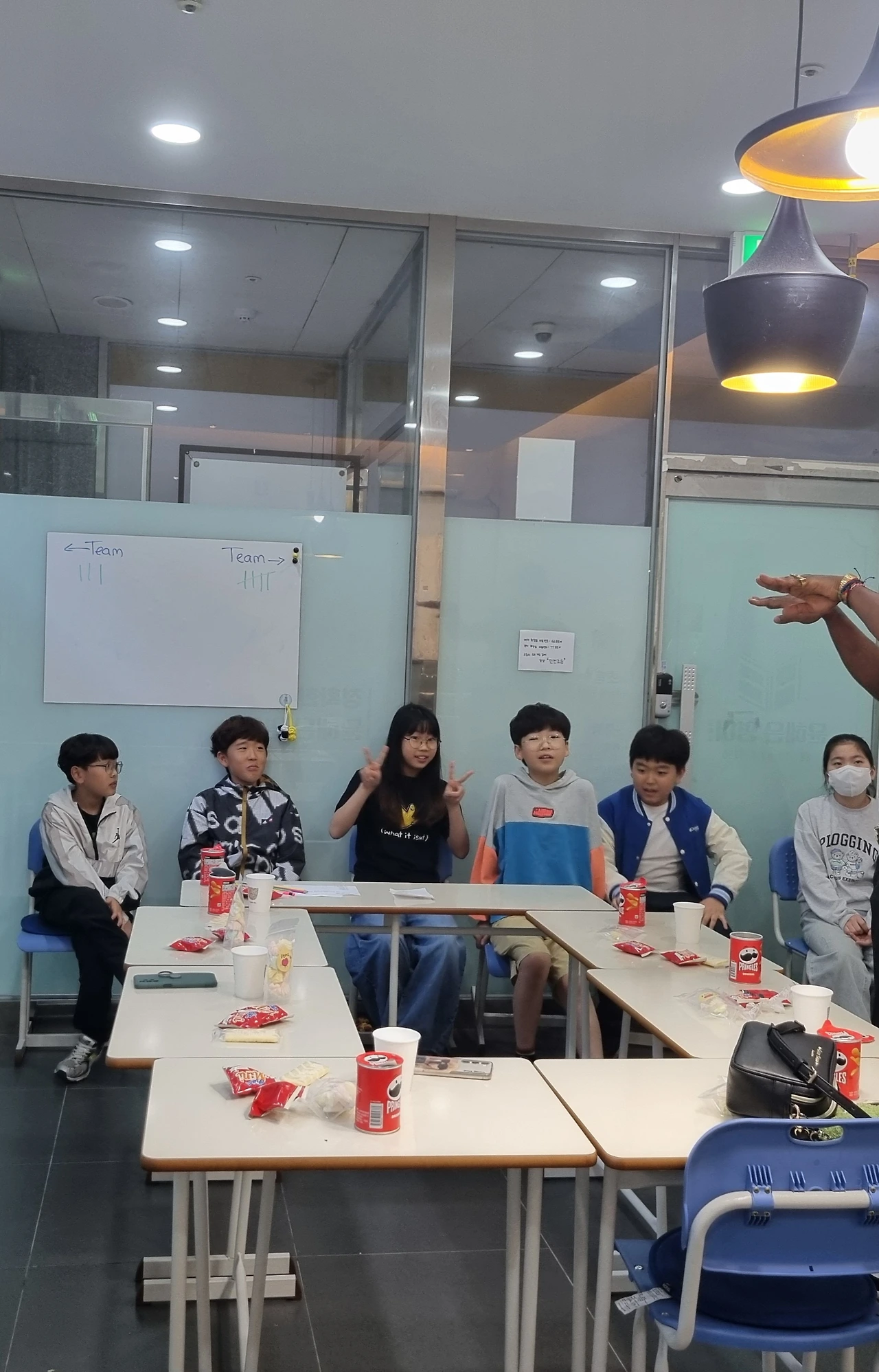 서로 다른 반 학생들끼리 섞여서 금세 친해지는 모습이 정말 보기 좋았다. 배려 넘치시는 원어민 선생님의 speaking 수업 덕분에, 한명 한명 영어로 말할 기회가 주어졌다. 재밌는 activity와 함께 학생들의 얼굴에 웃음꽃이 피었다.
