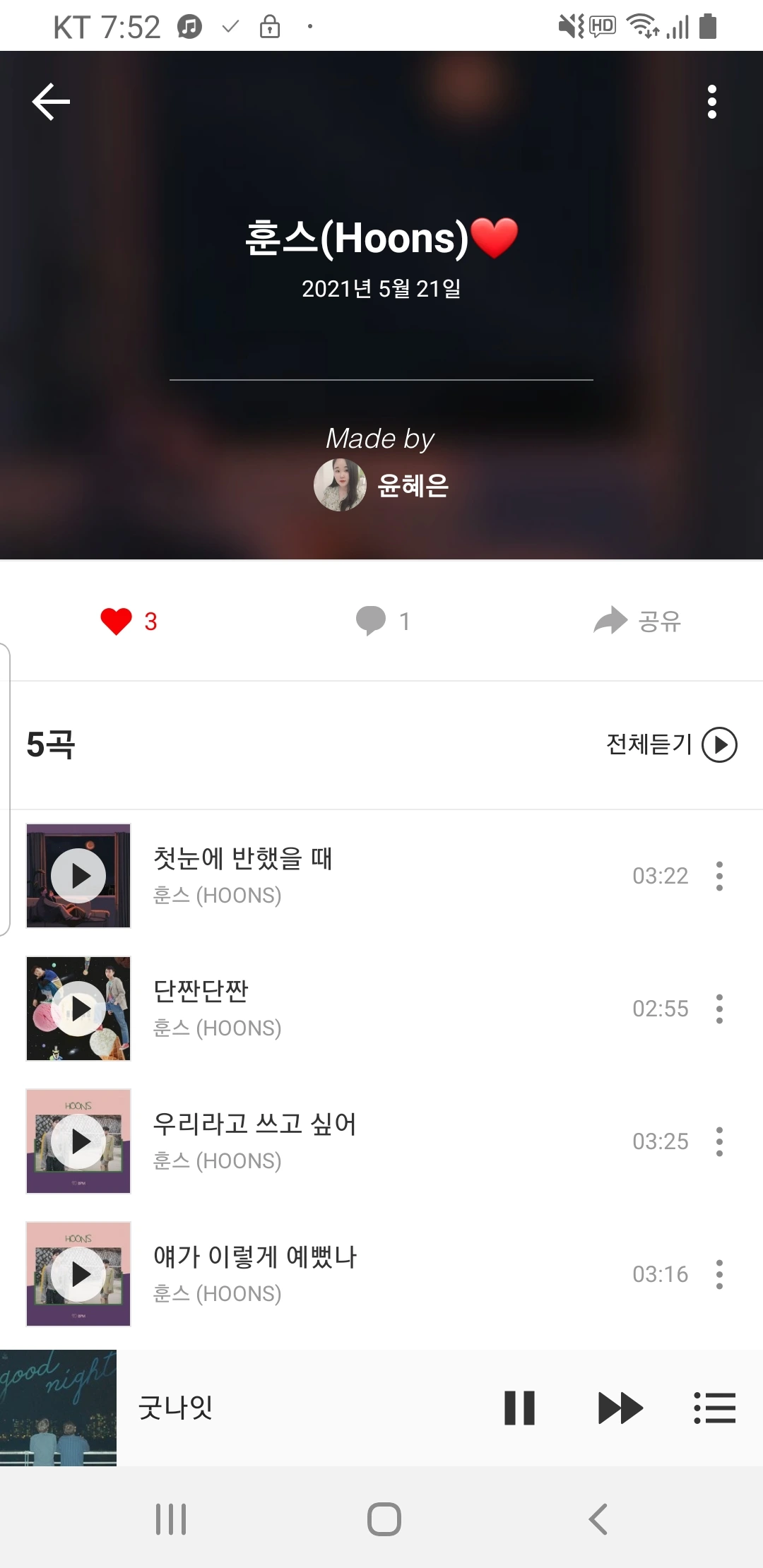 "훈스(HOONS)" - 보유곡 5곡