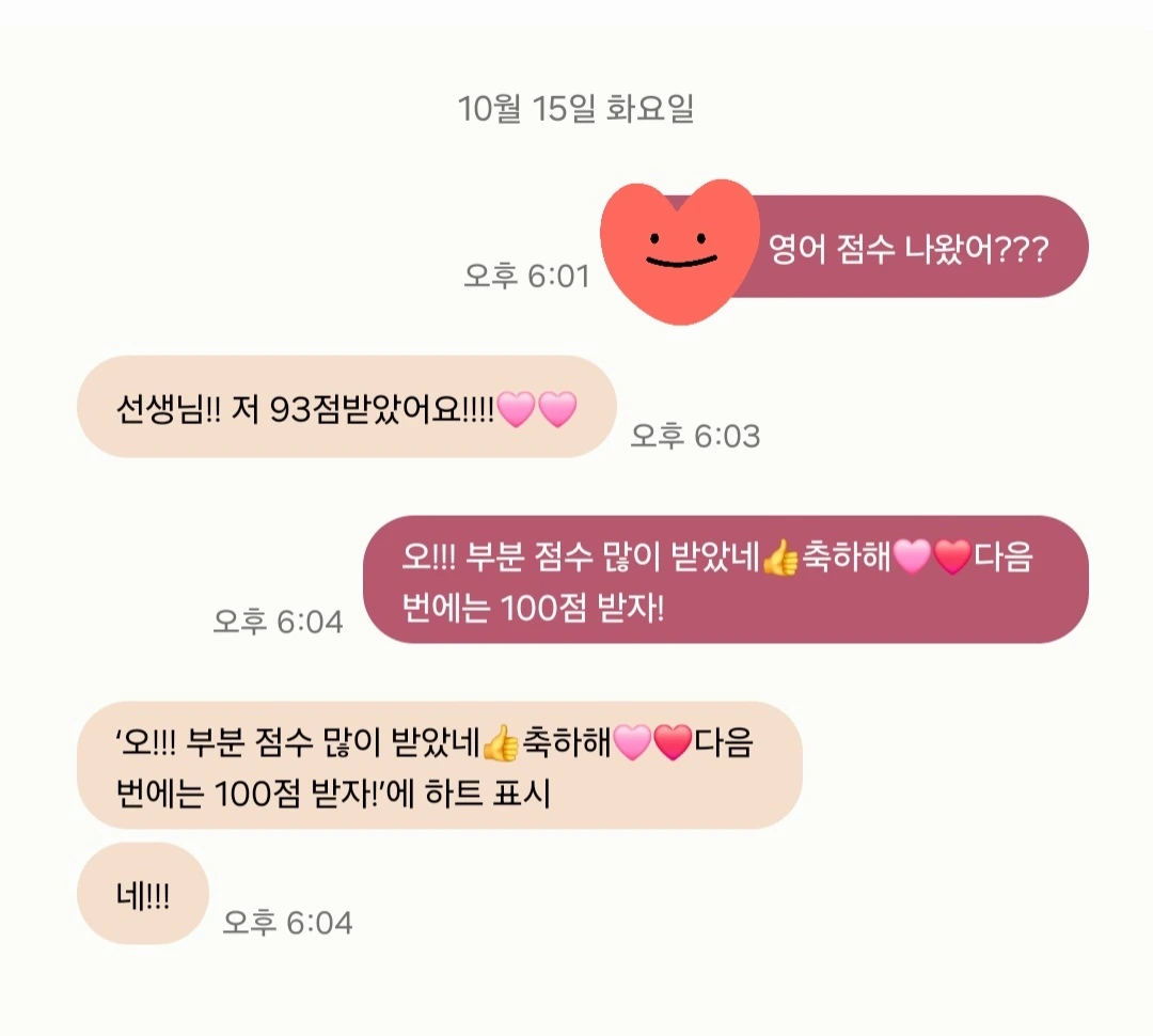 [윤혜은 영어 교습소]저의 진심이 통해서 행복합니다