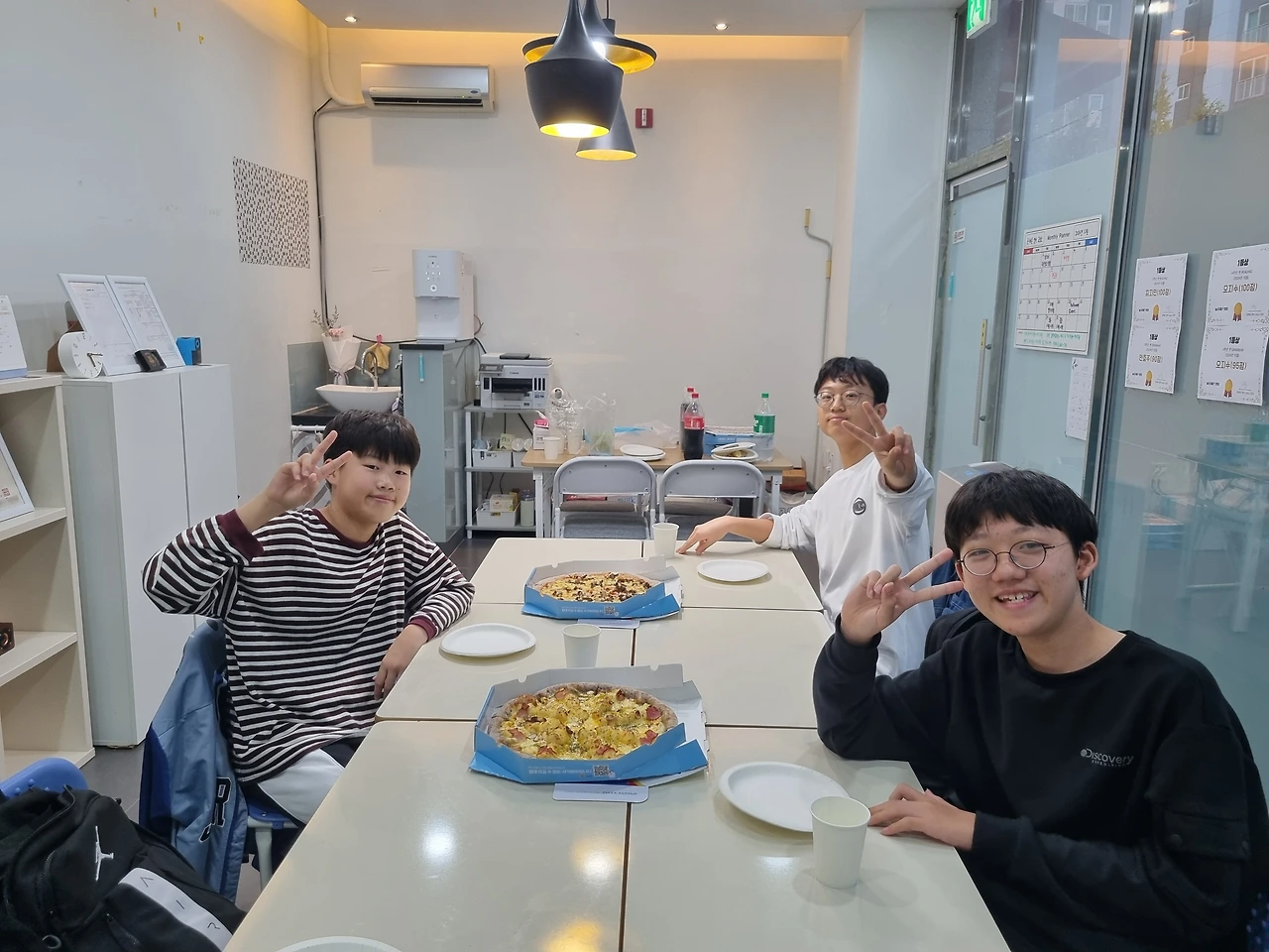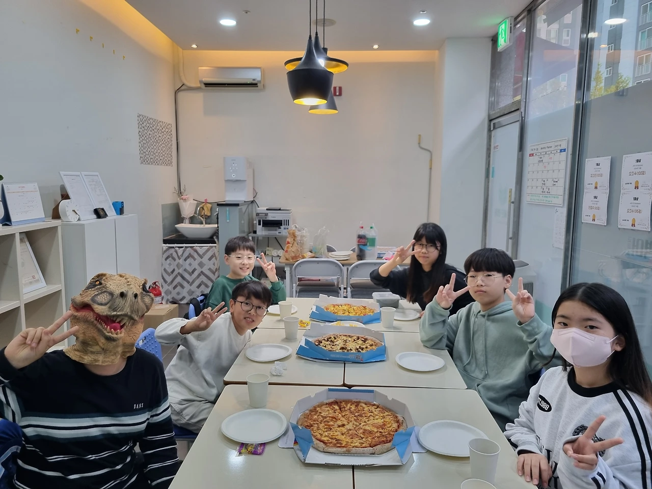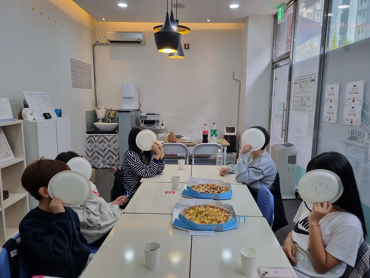 피자 대신 감자튀김이 먹고 싶다는 4학년 반, 재밌는 게임을 가지고 온 3학년 반, 공룡 가면이 인상 깊었던 5학년 반, 피자를 7조각 먹은 학생이 있었던 예비 중등 반과 중등 기초 반.