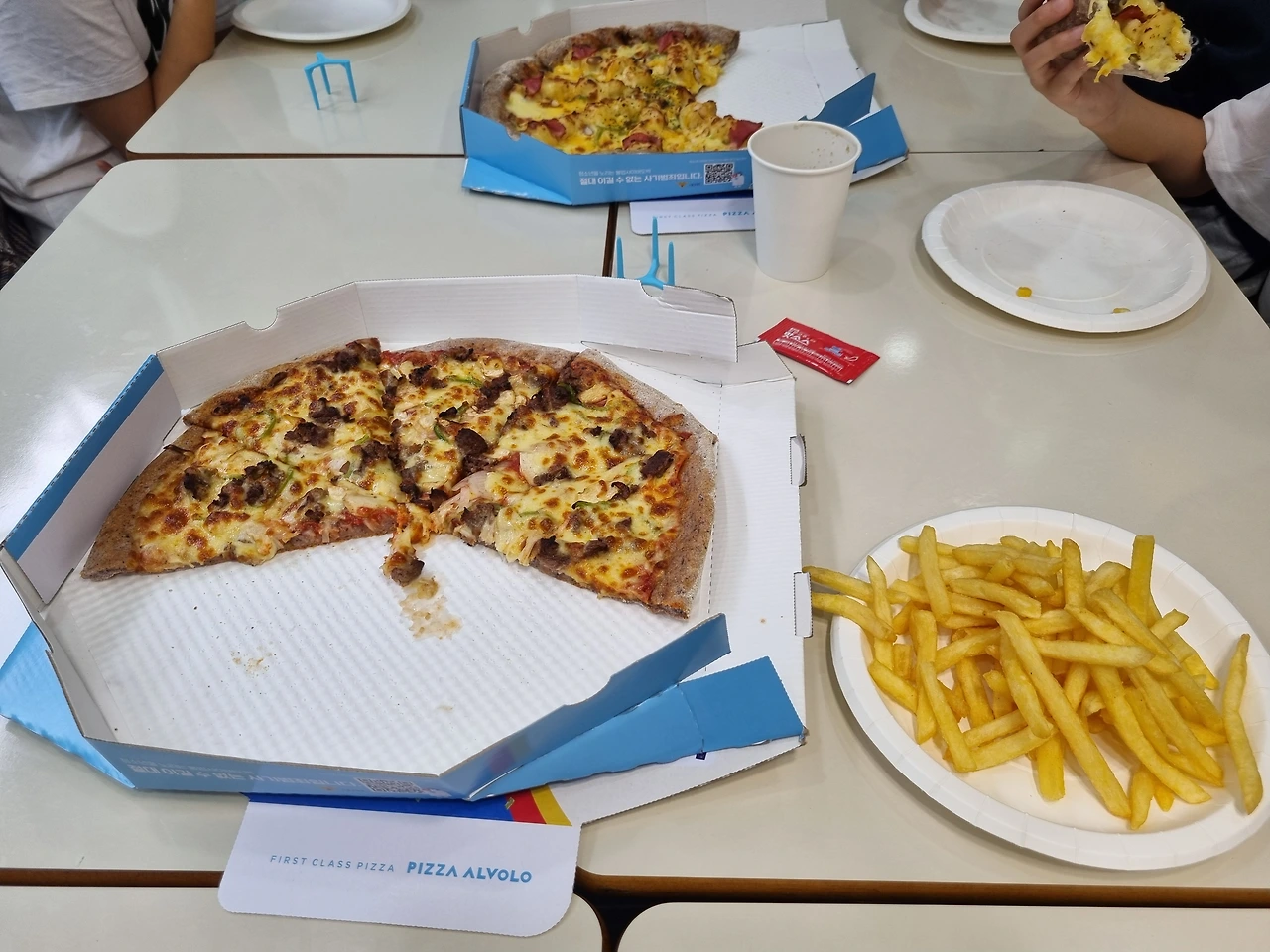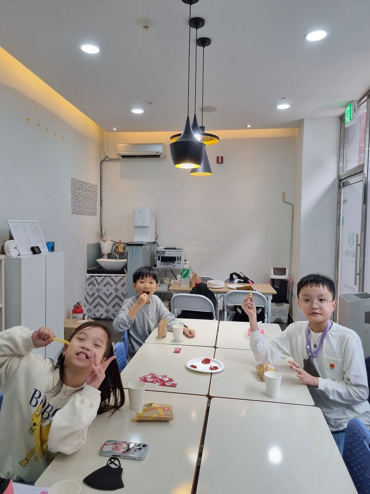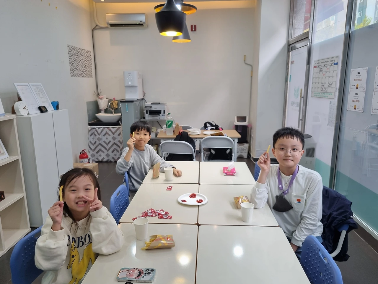 피자 대신 감자튀김이 먹고 싶다는 4학년 반, 재밌는 게임을 가지고 온 3학년 반, 공룡 가면이 인상 깊었던 5학년 반, 피자를 7조각 먹은 학생이 있었던 예비 중등 반과 중등 기초 반.