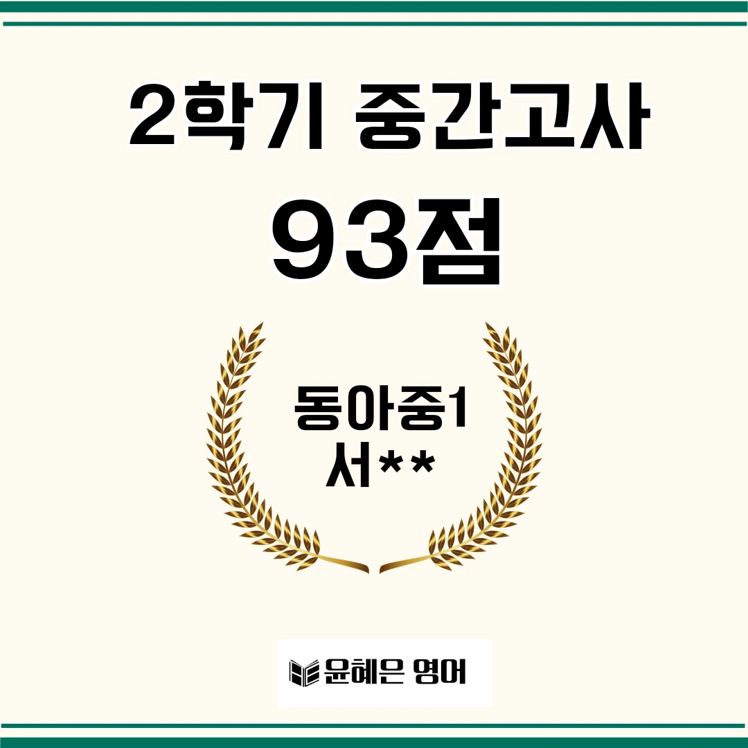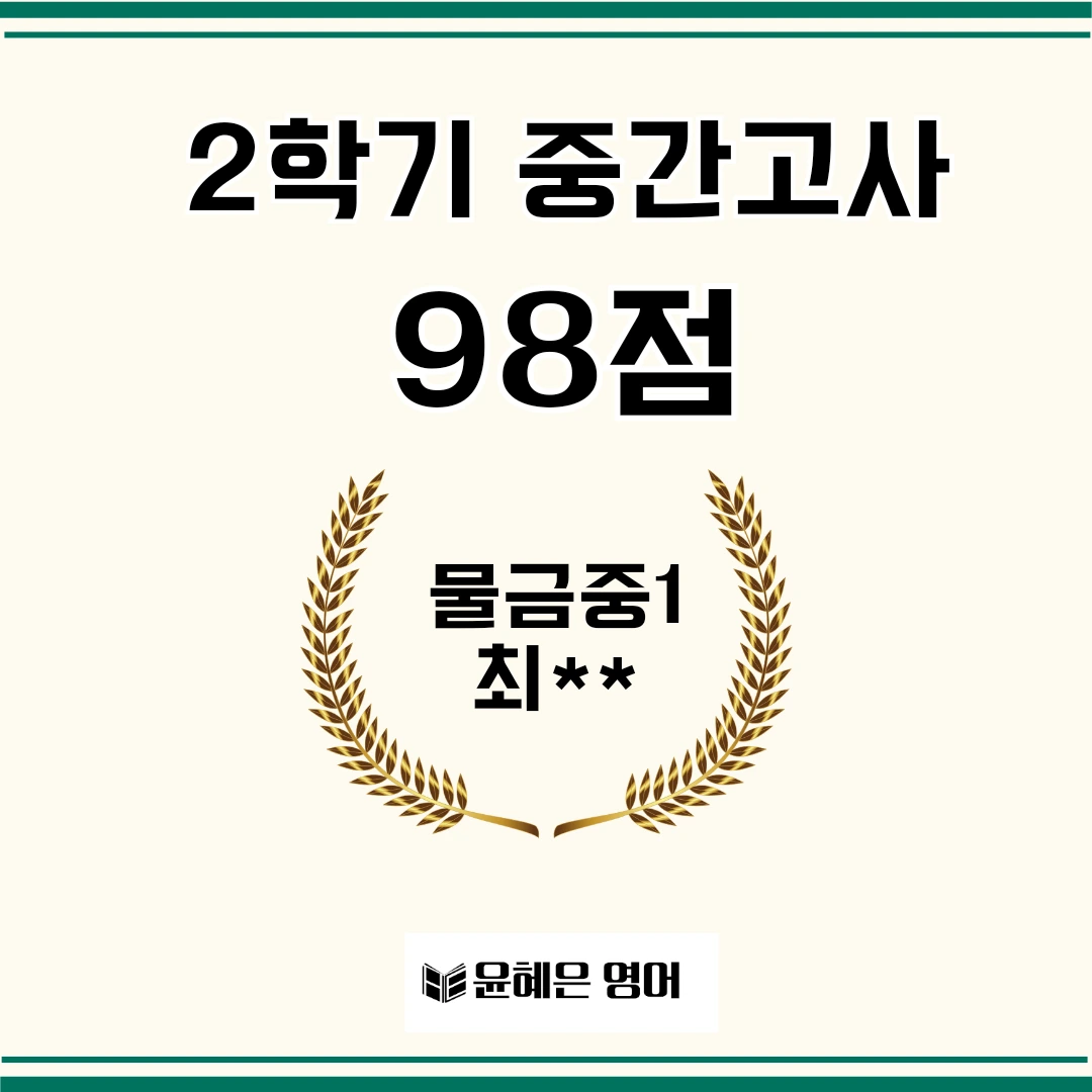[윤혜은 영어 교습소]2학기 중간고사 성적 우수자 공지