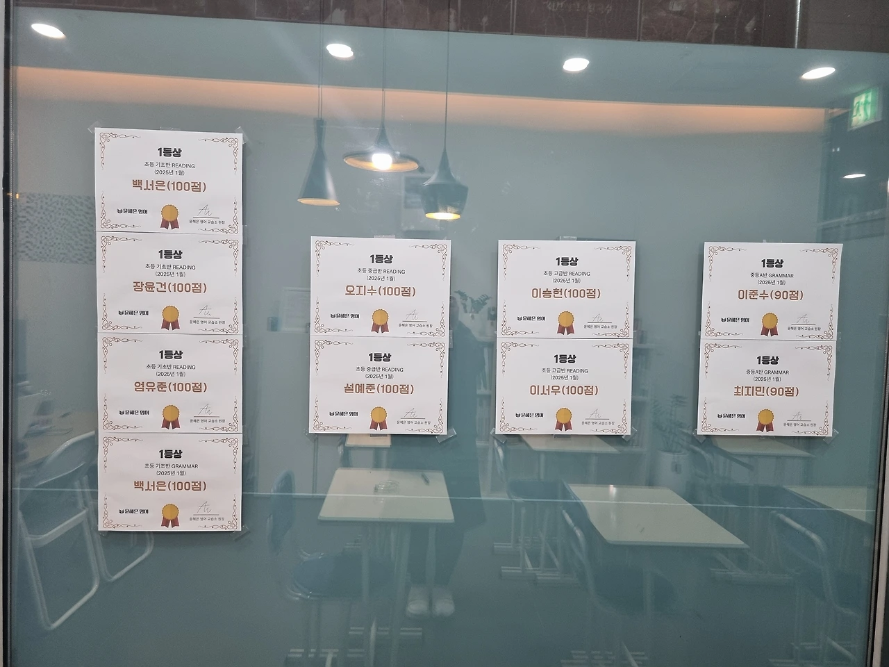 기존 재원생들이 90점~100점 받는 것을 보고, 그리고 1등상 받는 친구의 상장이 교습소 벽면에 붙는 것을 보고, 신규생들은 자극을 받는다.