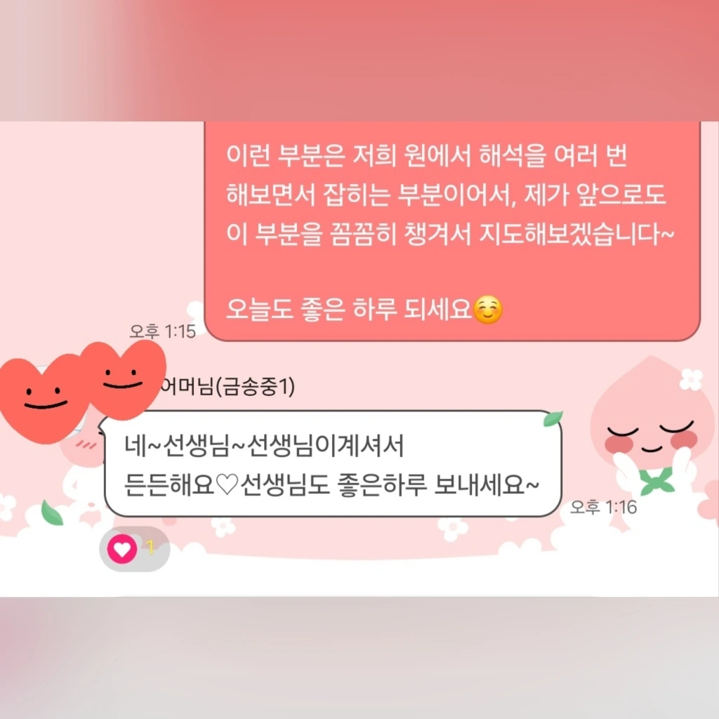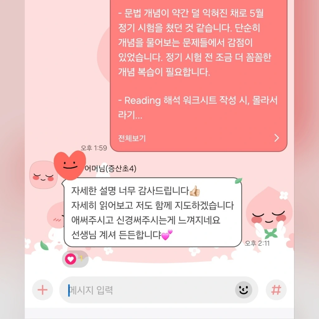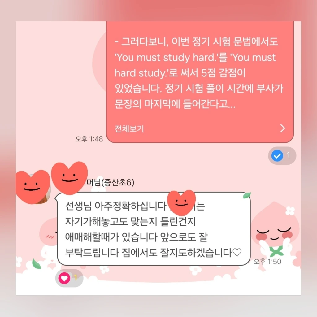 아이의 문법 감점을 분석해서 설명드렸을 뿐인데, 돌아오는 답장은 내 마음을 다독이는 따뜻한 말들이었다.