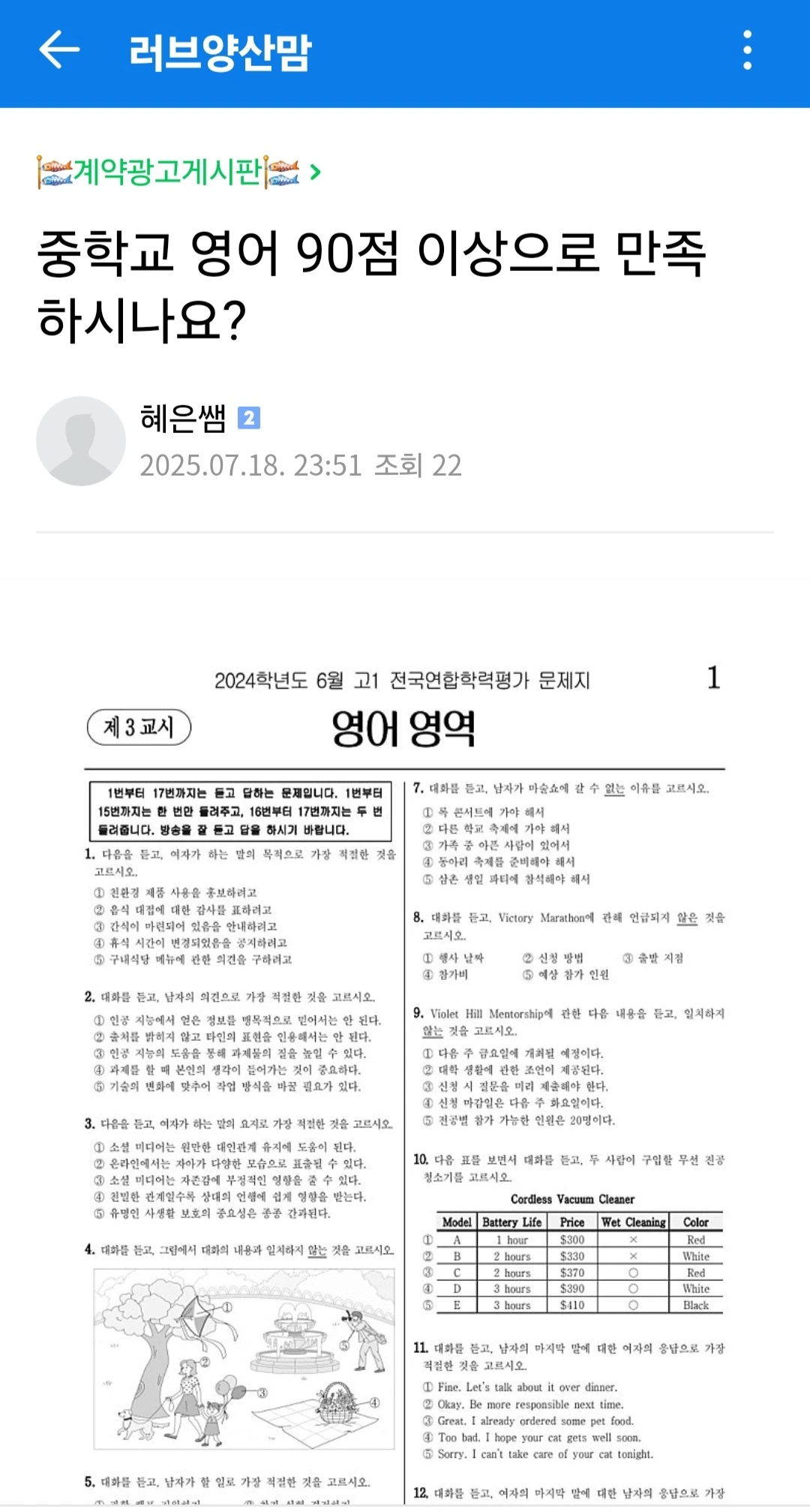 학부모님 전화 한통으로 완성된 홍보글
