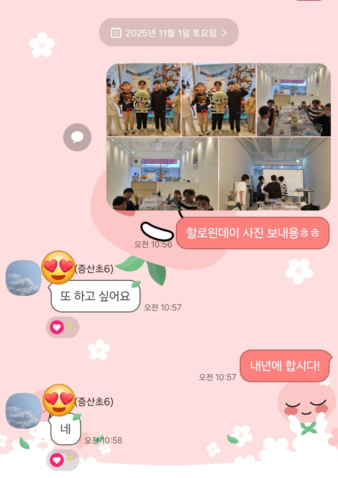 할로윈 이벤트를 진행한 다음날, 학부모님들과 학생들에게 개별적으로 사진을 공유했다.