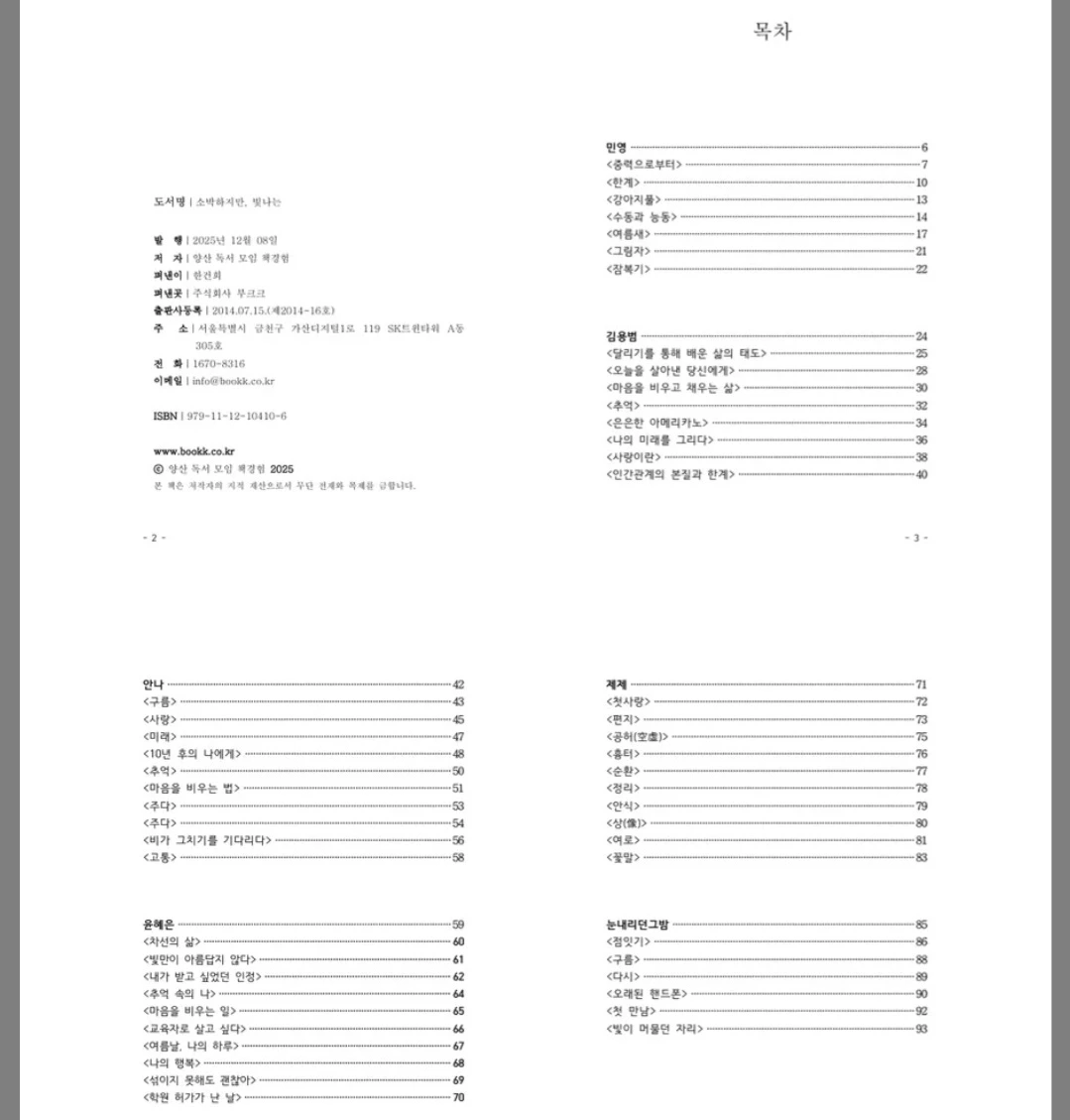 2025년 초부터, 책경험 모임의 온라인 글쓰기 모임 6명이, 매달 하나의 주제로 4편의 글을 썼습니다. 그 중 각자 마음에 드는 10편 정도의 글을 모아서 책을 출간하게 되었습니다.