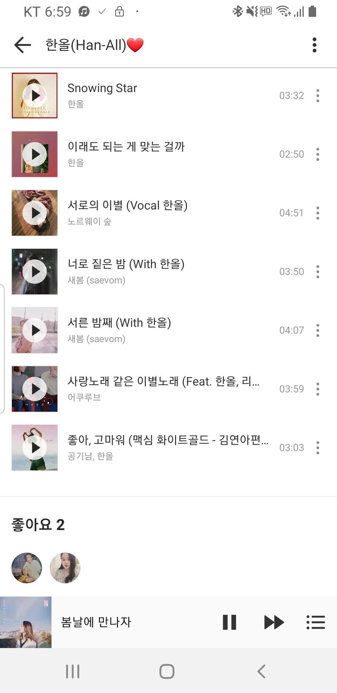 한올의 곡들 중 가장 좋아하는 곡, 2017년의 '봄날에 만나자'. 듣자마자 나른해지는 곡인데, 통통 튀는 배경음 때문인지 묘하게 발랄한 느낌이 든다. 한마디로, 좋다.