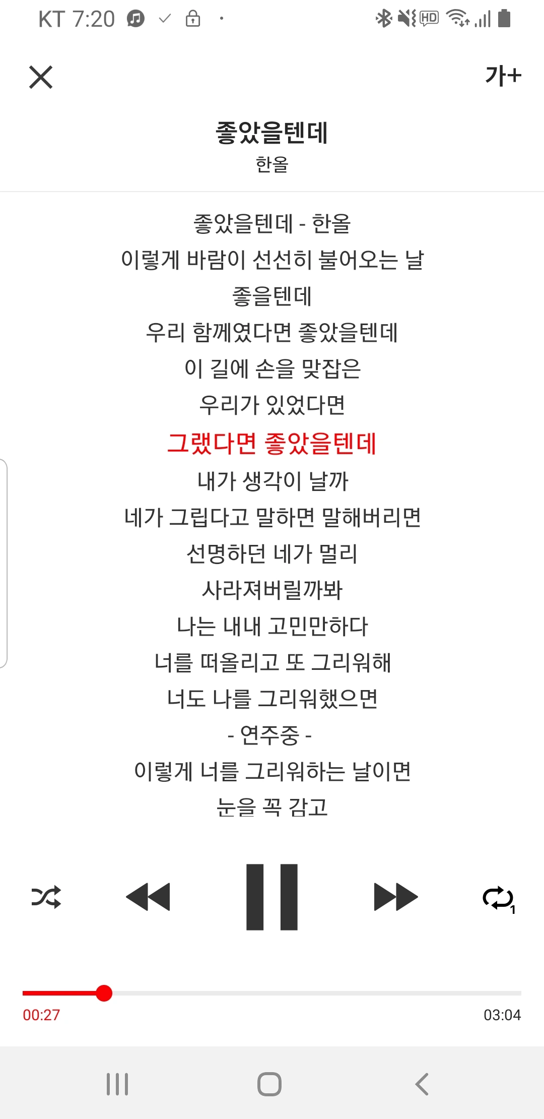 2019년의 '좋았을텐데'. 이 곡에서 한올의 목소리 포텐이 터진다. 고급스러운 목소리로 차분하게 노래하니, 노래의 전반적인 분위기가 고급스럽다.