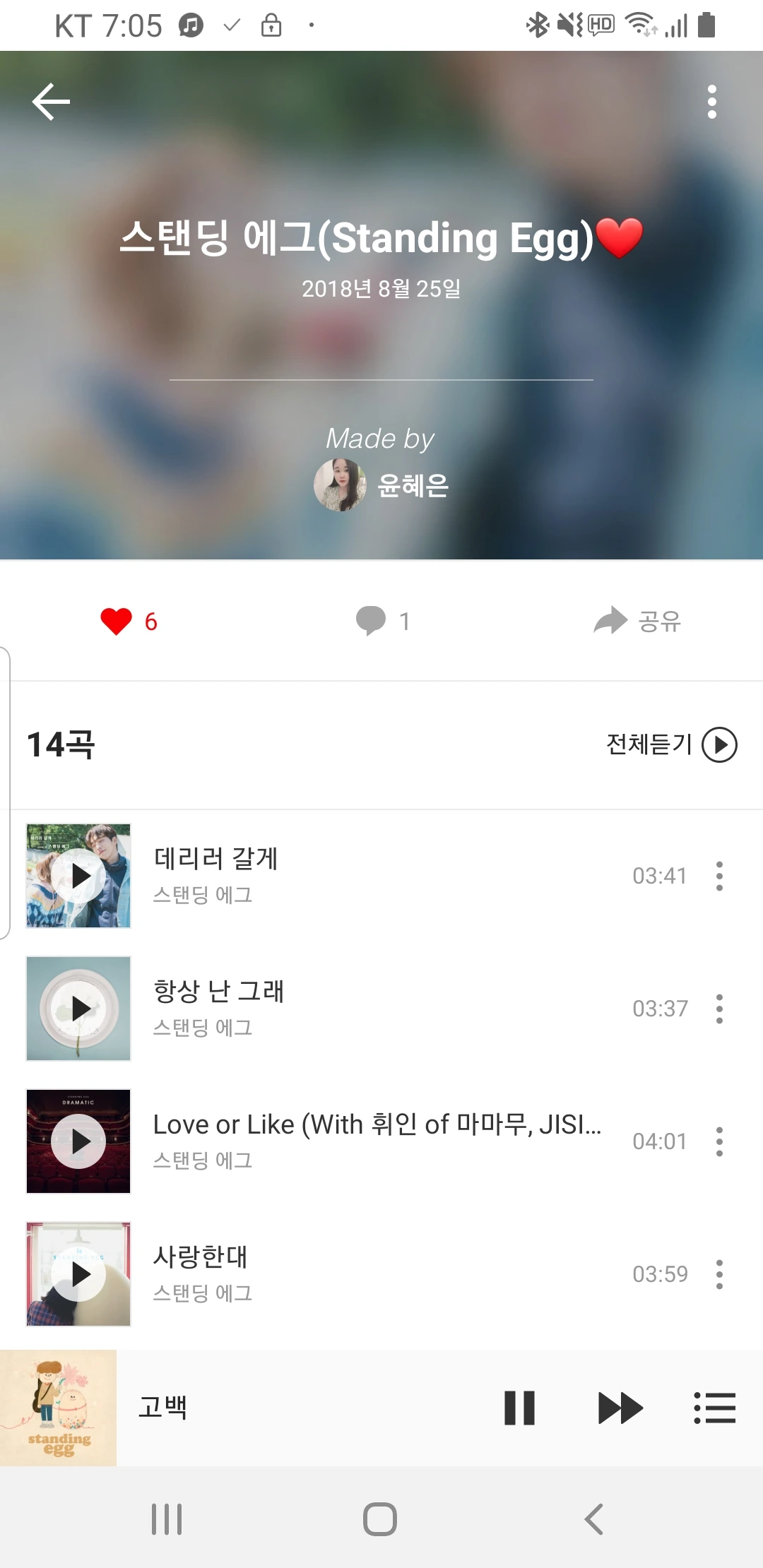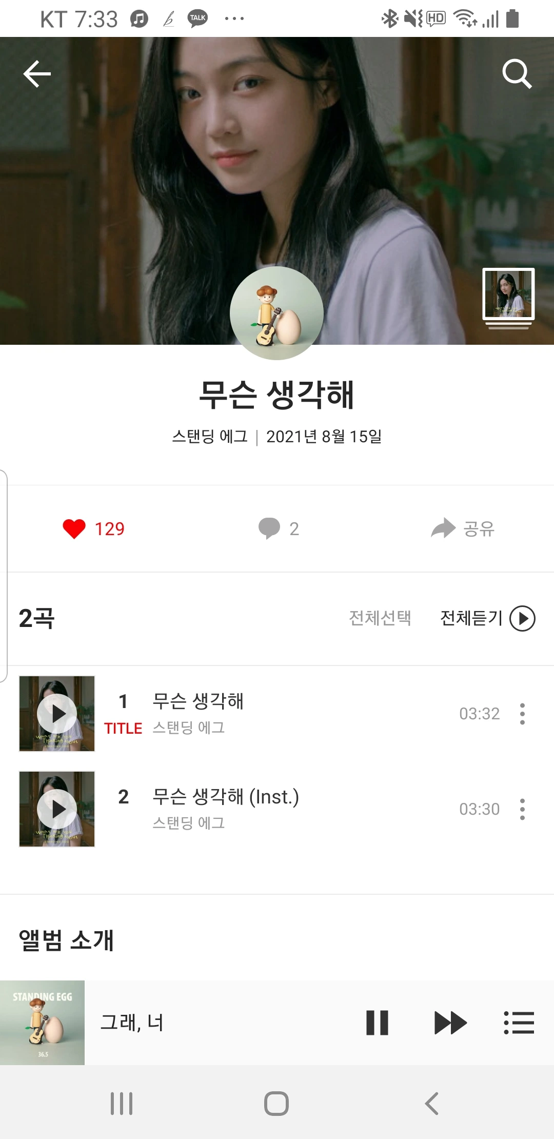 스탠딩 에그는 얼마 전에도 노래를 냈다. 스탠딩 에그가 아직까지도 꾸준하게 활동을 이어오고 있어서 너무 고맙다. 나의 스탠딩 에그에 대한 팬심은 여전히 ing다.