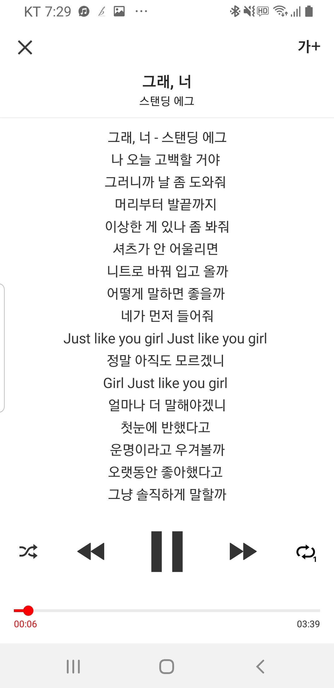 2014년의 '그래, 너'. 오랫동안 좋아한 상대방에게 고백하려고 하는데, 긴장된다는 가사가 없이도 도입부에서 긴장됨이 느껴지는 곡이다.