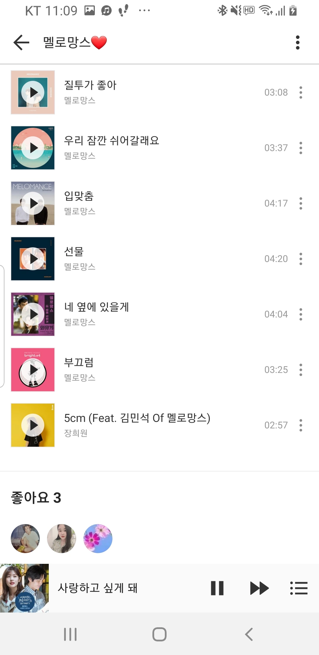 2017년의 '사랑하고 싶게 돼'. 가볍게 듣기 좋은 곡이다. '부끄럼'정도의 매력은 아니지만, 어느 정도 멜로망스의 특유의 느낌이 매력적으로 다가오는 곡이다.