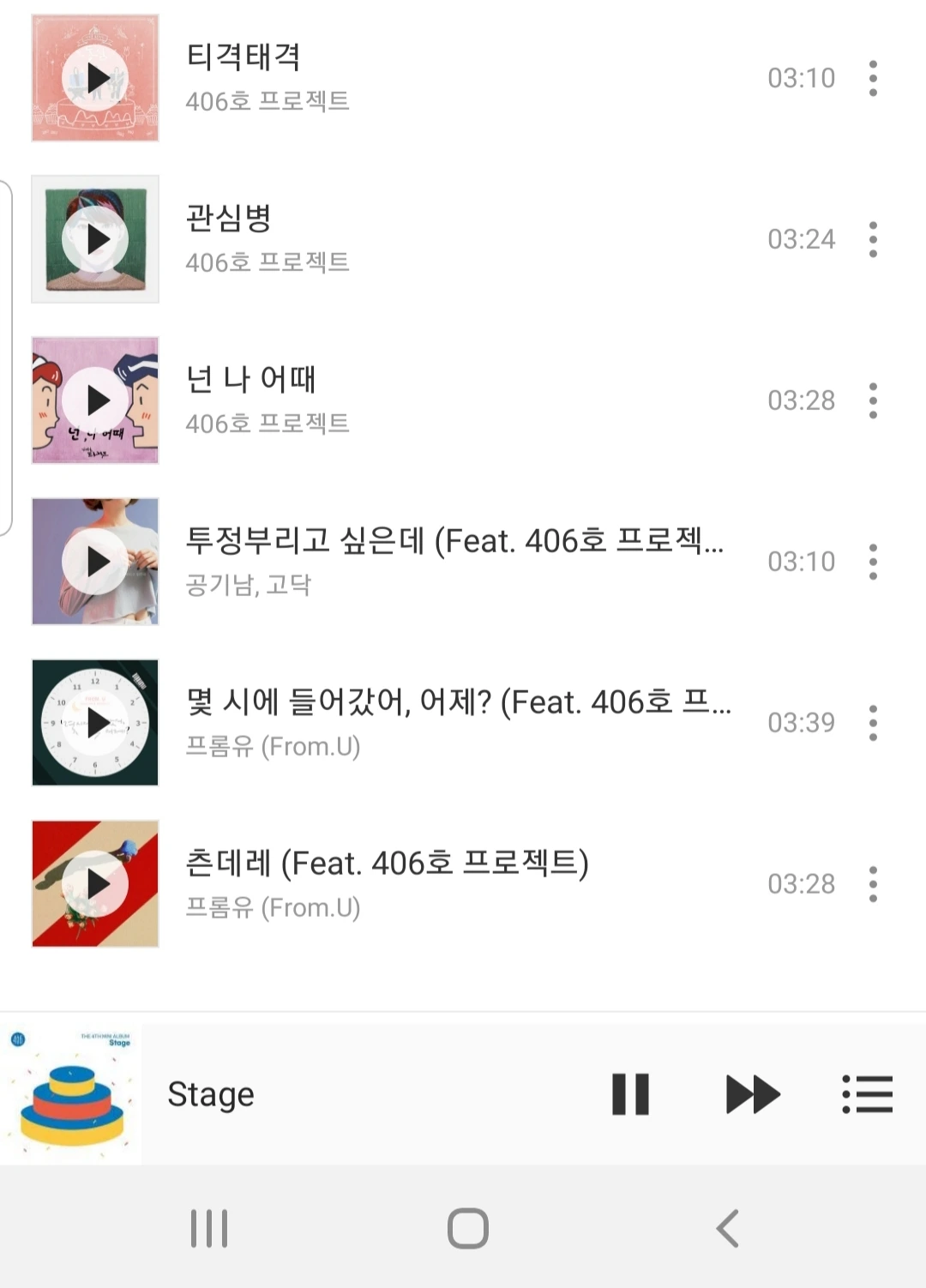 그와 유사한 곡을 듣고 싶으면 '집콕'을 들어보면 좋을 것이고, 406호 프로젝트가 인디 뮤지션으로 오랜 기간 사랑받으며 장착한 성숙미를 느끼고 싶으면 'Stage'를 들어보면 좋을 것이다.