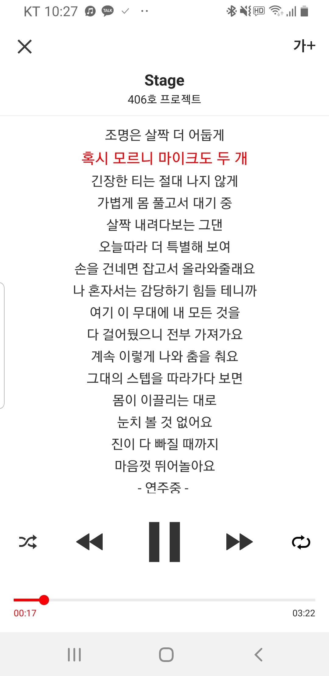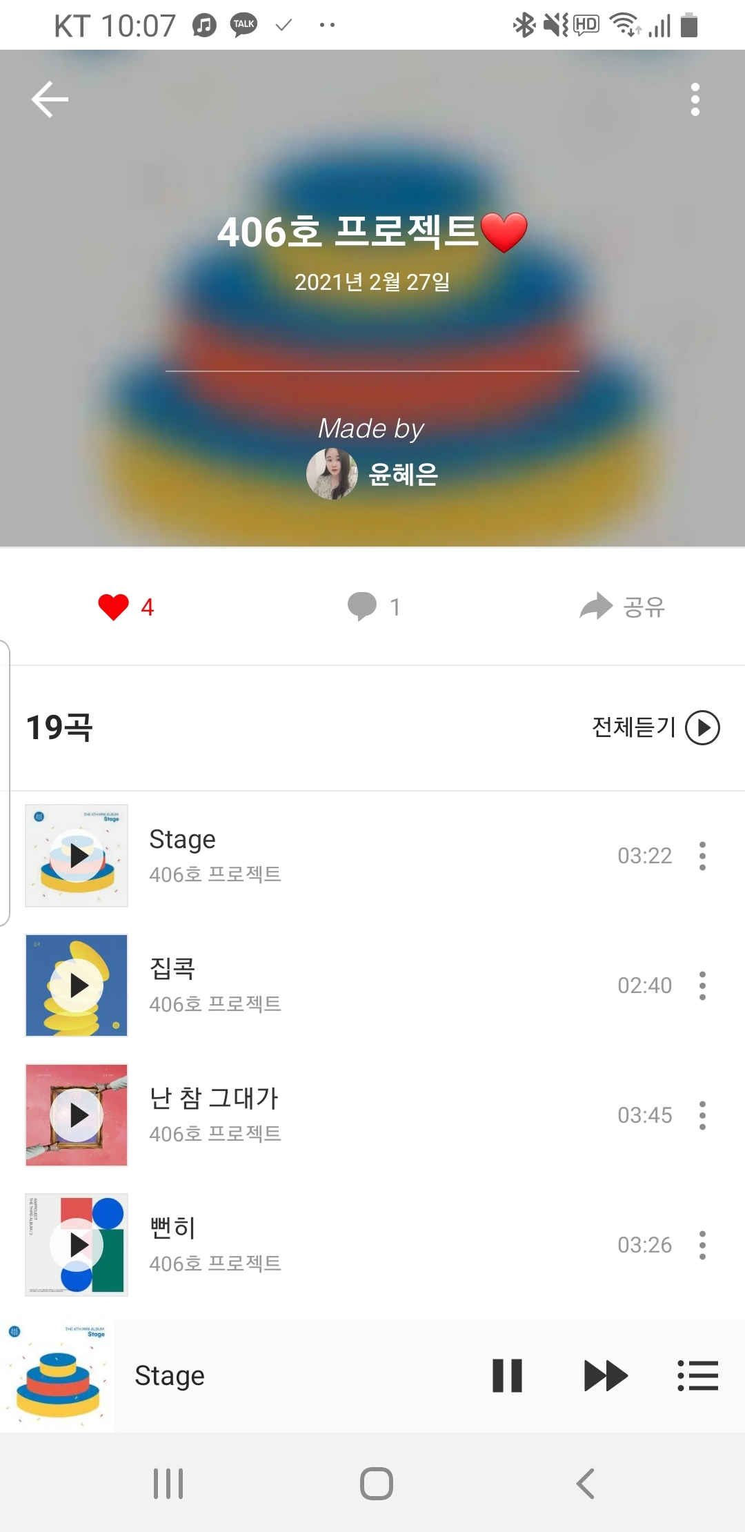 나의 출근길을 담당하는 곡인 'Stage'는 무대에 서는 모두가 공감할 만한 곡이다. 세상에 무대가 정해져있겠는가. 나의 칠판 앞도 무대고, 누군가의 일터 또한 무대 아니겠는가. 그 무대에서 지쳐 쓰러질 때까지 즐기다 내려오는 뮤지션의 모습이 떠오르는 곡. 이 곡은 406호 프로젝트의 많은 곡들 중 나의 원픽이다.