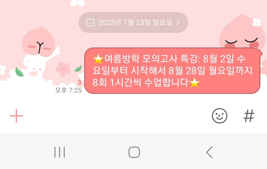 그래서 원장님께 여름 방학 모의고사 특강을 제안했고, 정말 소수만 모이더라도, 학생들의 실력 향상을 위해서 꼭 반을 열었으면 좋겠다고 말씀 드렸다.