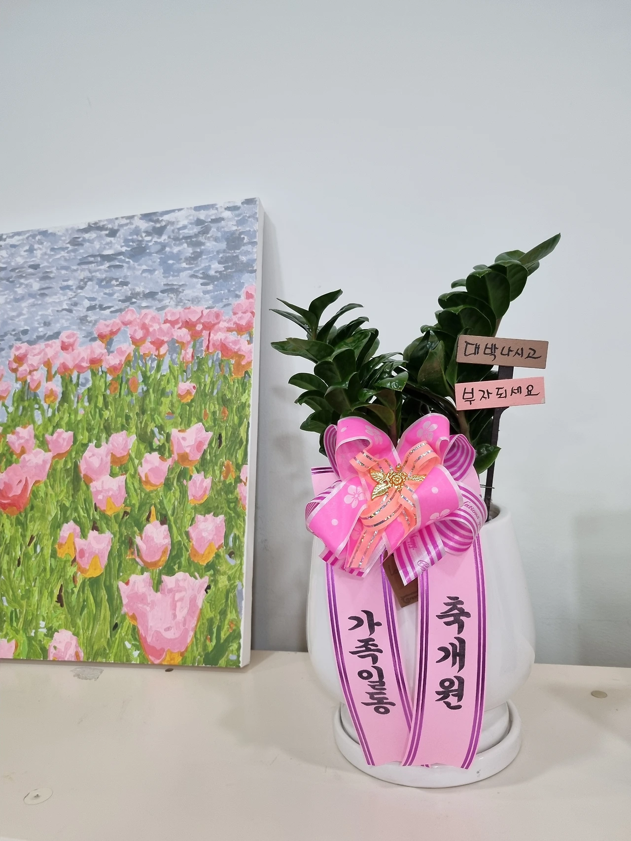 오늘은 교습소에 부모님께서 오셔서 락스로 대청소를 해주셨다. 혼자서는 엄두가 안 나서 쓸고 닦기만 하던 교습소가 윤이 반짝거리게 되었다. 예쁜 개원 기념 화분도 사오셨다. 정말 감사했다.