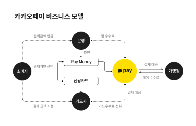간편결제 사업의 주 수익모델은 결제 수수료입니다. 하지만 각 기업의 영업 이익을 살펴보면 사용률 대비 흑자 전환에 어려움을 겪고 있습니다. 간편결제 사업자는 매출의 대부분을 카드사와 PG사에 지급해 구조상 큰 이익을 내기 힘들기 때문인데요. 이 말은 즉슨, 단순 지급 결제 수수료에 의한 수익보다 서비스 개발 및 유지 비용이 더 많이 들어감을 뜻합니다.