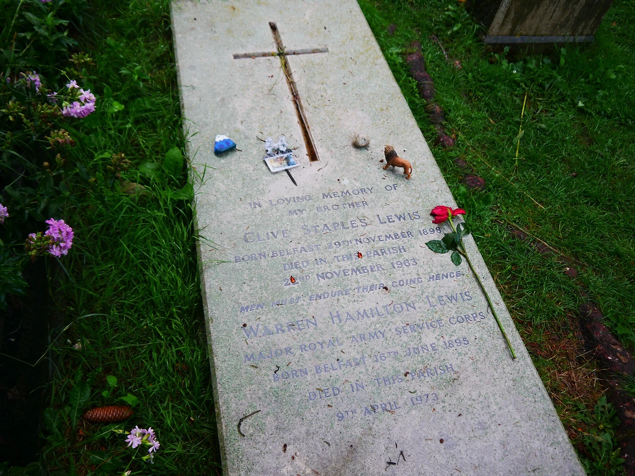 루이스의 무덤을 방문하는 사람을 위해 이곳엔 'C.S.Lewis Grave' 라는 안내 표시가 있지만 작게 표시해 놓은지라 처음 오는 사람이라면 무덤 위 이름을 일일이 확인해야 한다. 그러나 그의 작품을 아는 사람이라면 무덤 위에 놓인 인형만 보고도 알 수 있었다. 그의 작품 <나니아 연대기>에 나오는 사자, 아슬란이 있었다.