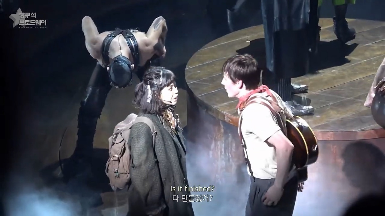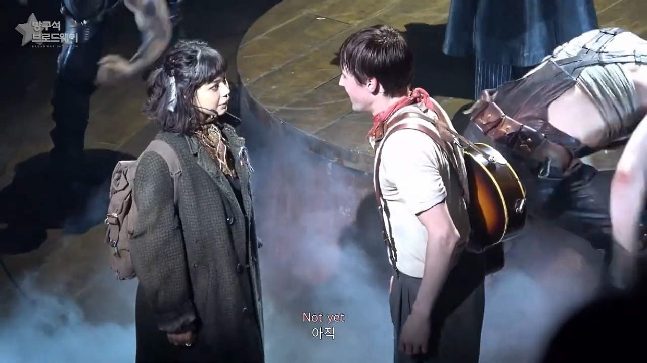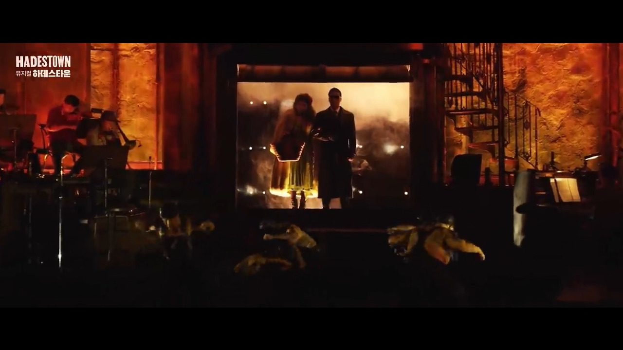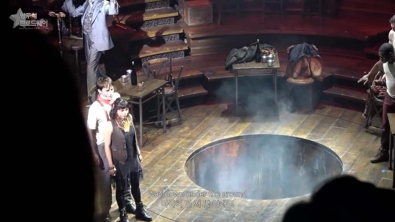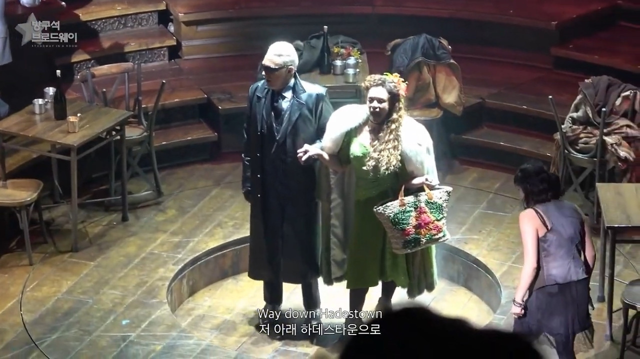 무대 구성의 한계 때문인지, 다른 이유에서인지 우리나라는 지하세계를 '기차'로 연결한다. (저 문제의 기차 문은 19일에 한 번 열리고 다시 닫히지 않아 어이없는 장면이 연출됐었다. 예를 들면 에우리디케가 자기 발로 터벅터벅 걸어 지옥으로 돌아가는 모습... 일꾼들과 에우리디케, 오르페우스가 오밀조밀 모여서 대기하고 있는 모습... 공연 후에 뭔가 공지가 있을거로 생각했는데 전혀 없었음.) 브로드웨이 에우리디케가 지하세계에 갈 때도 저렇게 사라졌을지 궁금하다. 기차도 좋긴 한데 "저 아래 하데스 타운으로"와 더 어울리는 건 무대 장치를 이용해 아래로 뿅 사라지는 것같다. 연출이 조금 아쉽다.
