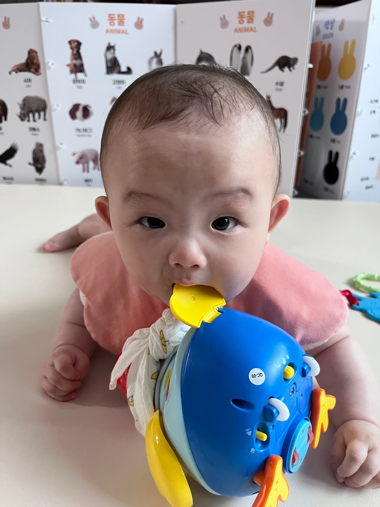 그녀의 움직임이 심상치 않다. 지난주 조금씩 배밀이를 시작하는 듯싶더니 이제는 꽤나 티 나게 배를 밀기 시작했다. 목표물이 포착되면 바둥거리며 조금씩 전진하는 그녀였다.