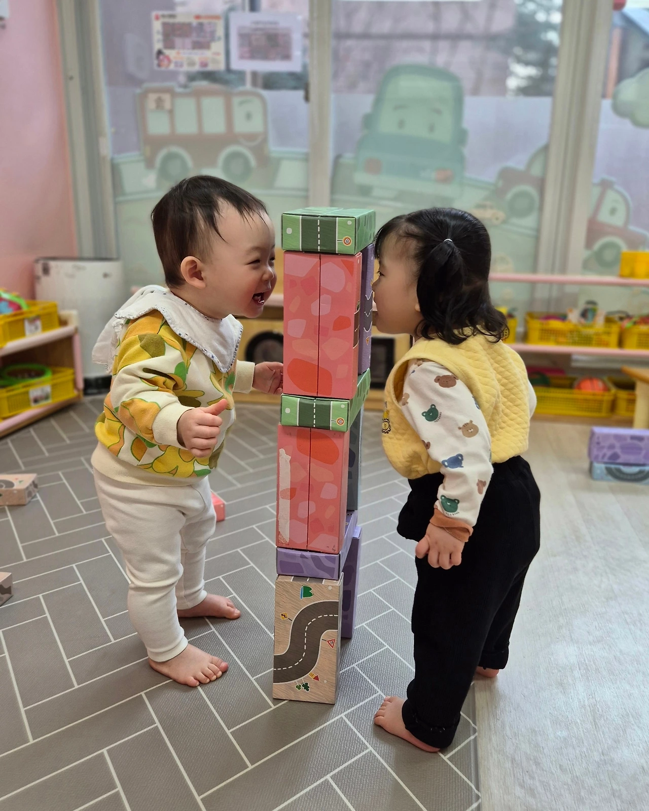 그녀에게 다가가는 길은 설렜다. 신호는 더뎠으며, 발걸음은 빨라졌다. 저 멀리 어린이집 보이는 어린이집 입구에서 그녀가 보였다.