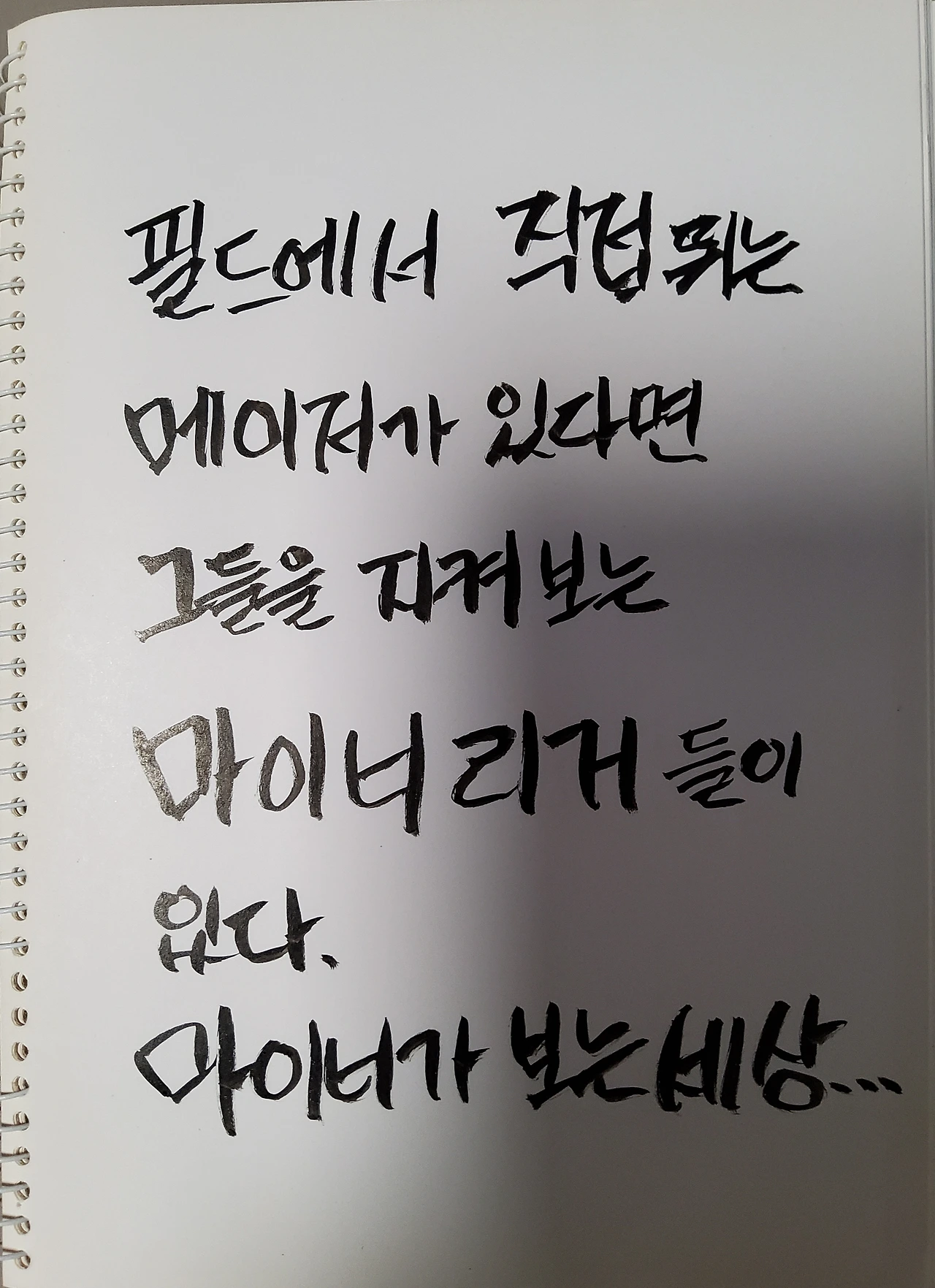 필드에서 뛰는 마이너도 있지만뛰지 못하는 마이너도 있다마이너는 생각한다저들이 뛰는 이유는 내가 못 뛰는 이유는저들이 메이저인 이유는내가 마이너인 이유는내가 메이저가 되는 날은...오는 것인가?내가 되고픈 것이...진정 메이저리거인가?