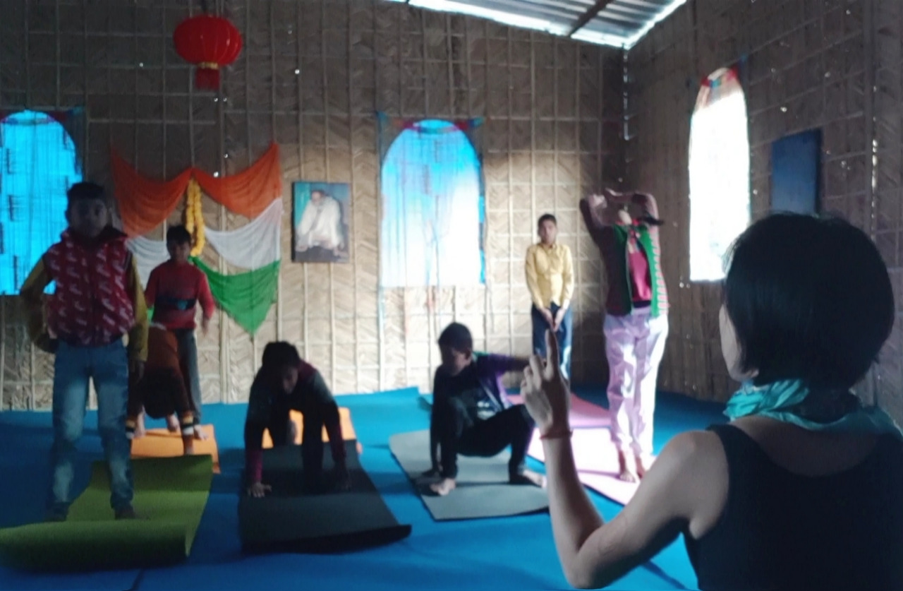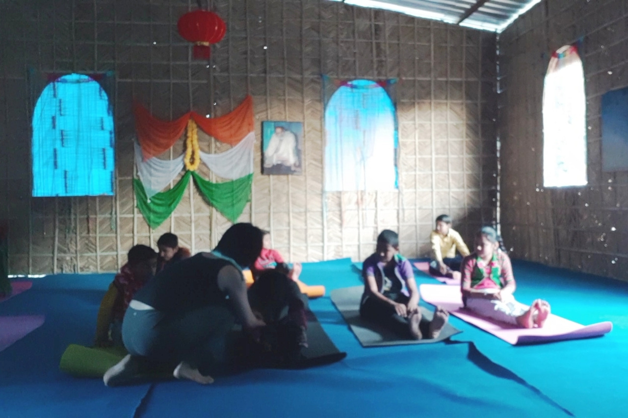 인도의 아이들과 요가 하기
