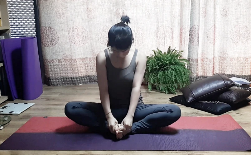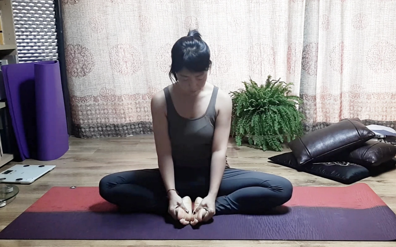 바르게 앉아 무릎은 벌리고 양쪽 발을 가운데로 모은다. 발꿈치가 회음부 쪽으로 오게 한다. 발바닥을 천장으로 향하게 펴고 동시에 엉덩이와 무릎을 움직여 균형을 잡는다. 허리를 펴고 숨을 크게 들이쉬며 가슴을 열어준다. 숨을 내쉬며 발바닥을 지그시 누르고 상체를 숙인다. 들이마시는 숨에 상체를 들어 바로 한다.