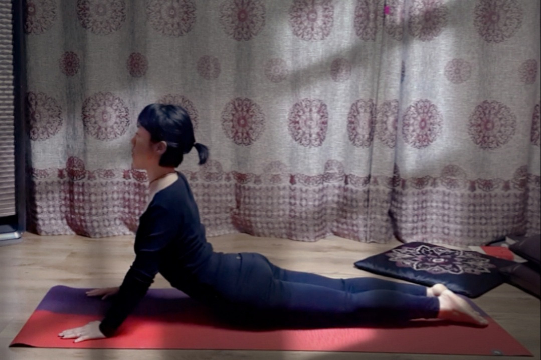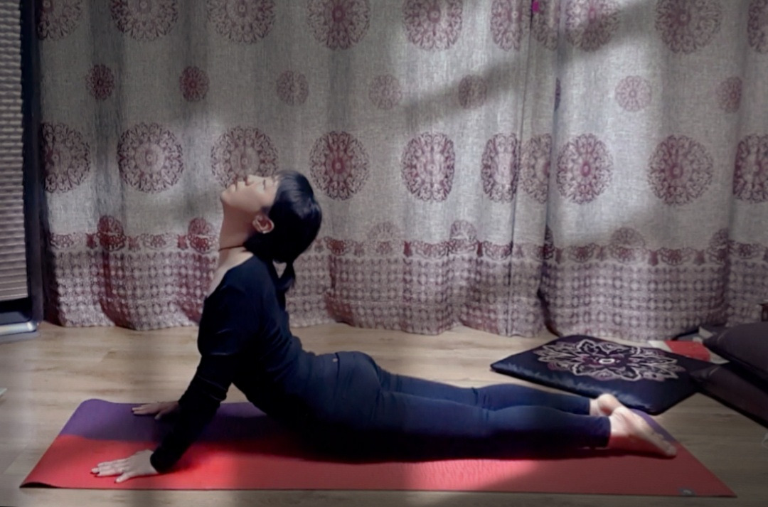 코브라 자세 역시 다소 쉬운 동작이라 여길 수 있다. 하지만 손의 위치, 상체를 뻗는 정도, 가슴과 어깨의 자세를 나에게 맞게 찾아가며 호흡과 함께 유지하고 기다리는 시간이 쉽지만은 않다. 이렇게 온전히 내게 집중하는 시간을 갖는 것이 요가 아사나의 시작일 것이다.