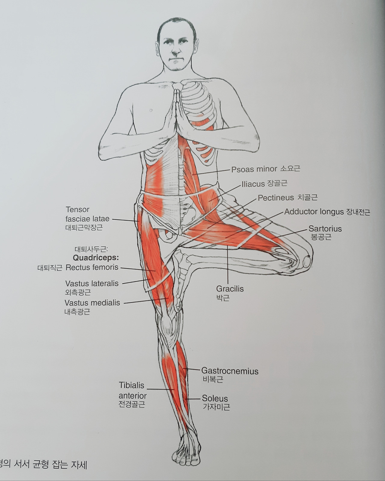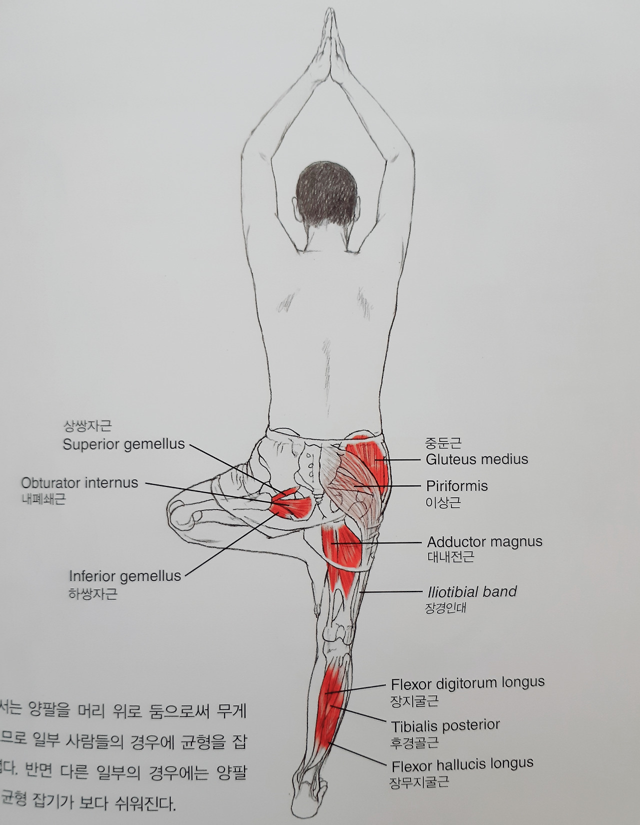 마음이 불안하면 호흡이 불안정하고 나무자세 역시 쉽지 않음을 알 수 있다. 땅을 지지하는 발에 힘을 주고 복부와 허벅지 엉덩이에 힘이 들어가게 한다. 그리고 천천히 숨을 들이마시고 내쉬면서 균형 잡는 것에 집중한다.