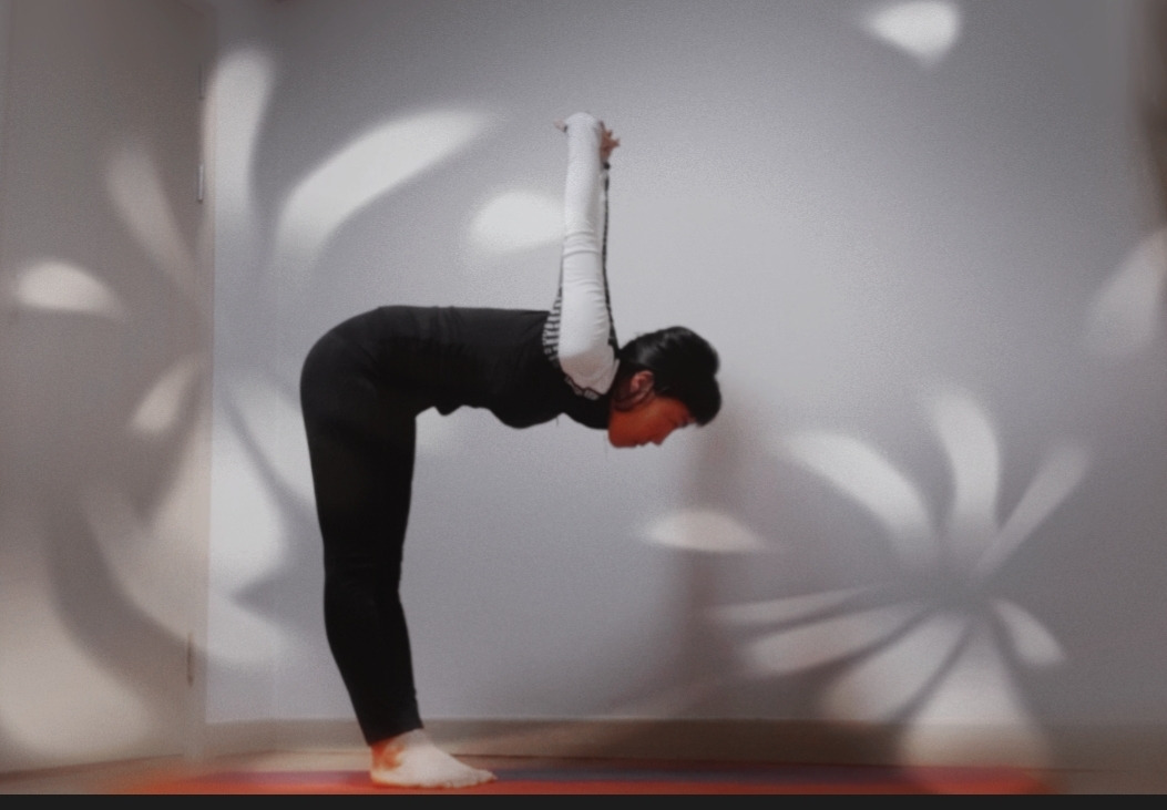 4. 내쉬는 숨에 Tadasana, 바로 서서 긴장을 푼다.