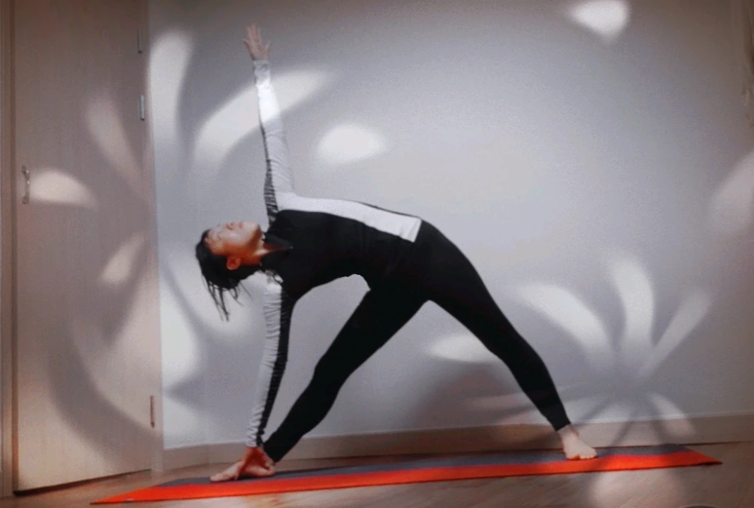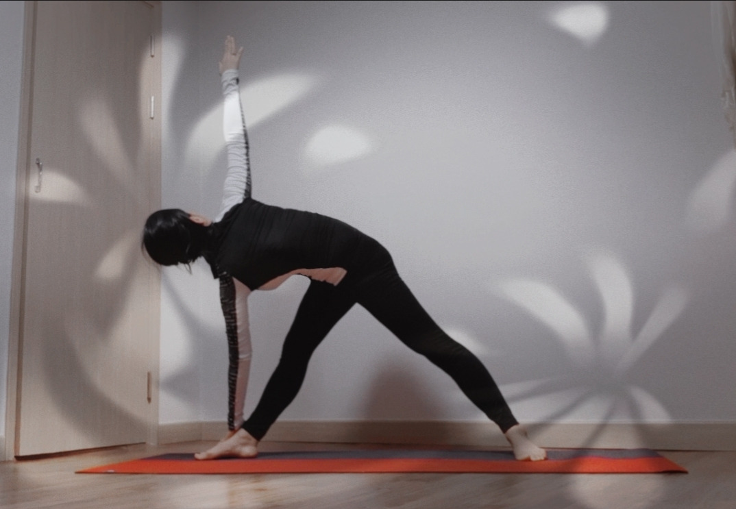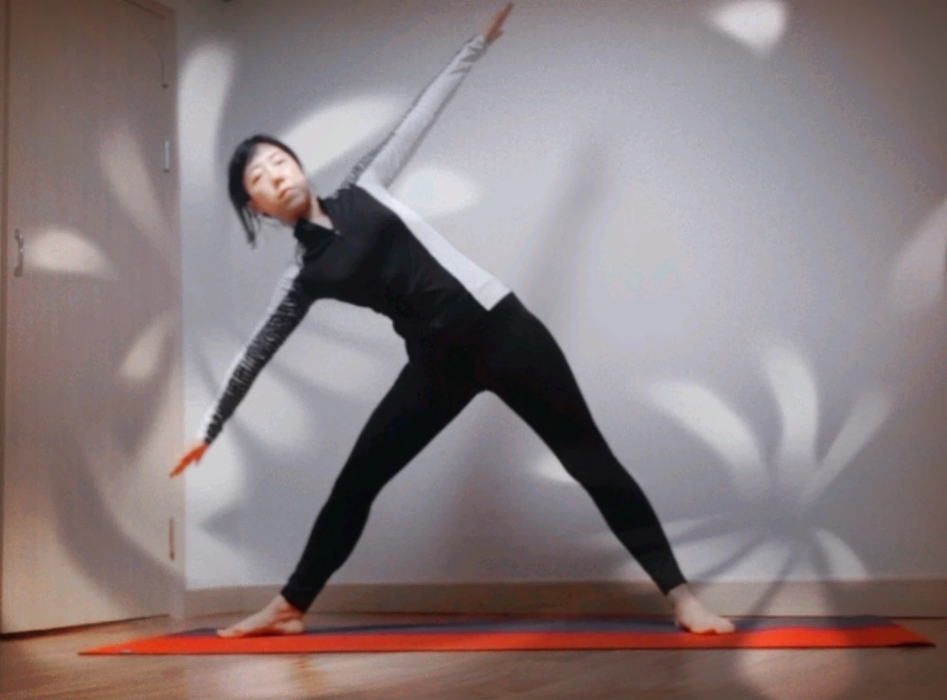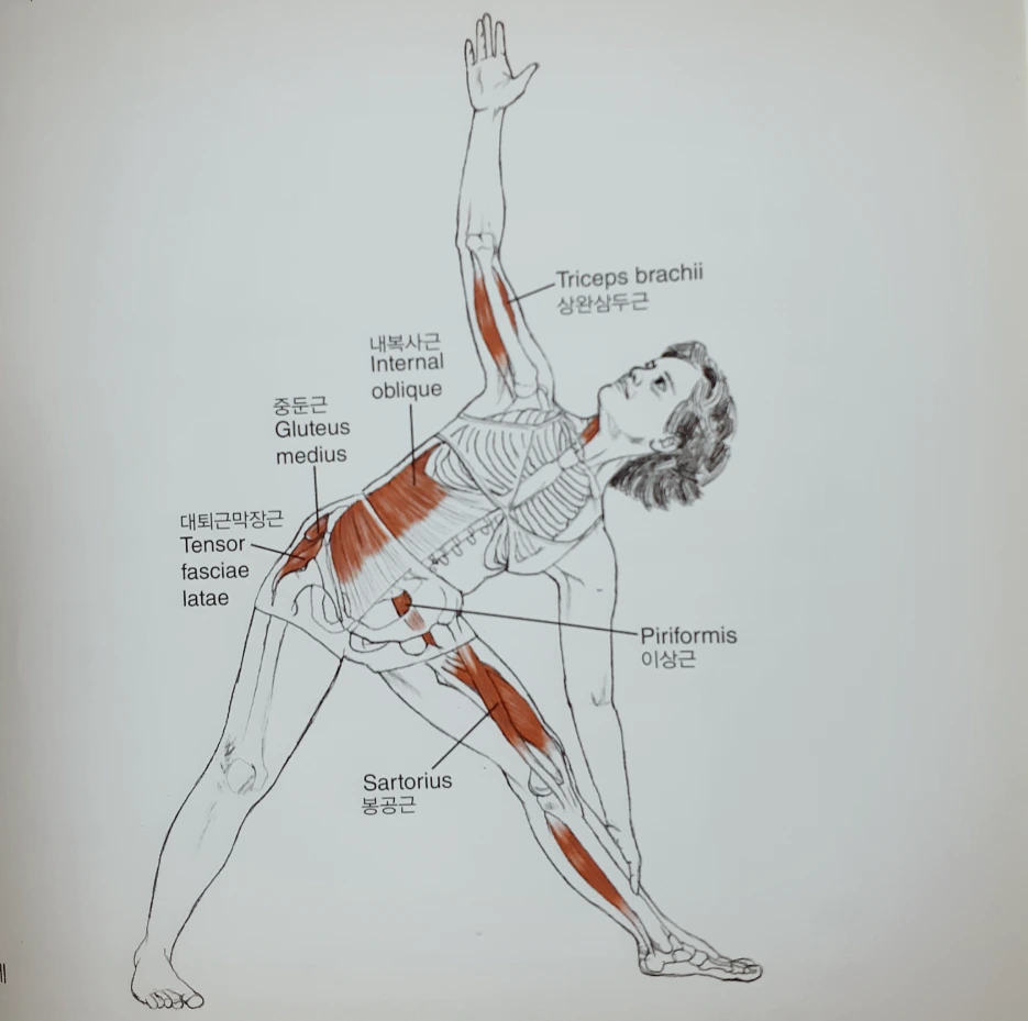 삼각자세는 발목, 무릎, 골반, 척추가 균형을 잡는 자세다. 골반을 중심으로 척추가 측면으로 회전하고 무릎과 발목이 지지한다. 균형을 잘 잡기 위해서는 내 몸의 근육과 관절의 유연성을 알아야 한다. 때문에 천천히 숨을 쉬며 척추와 무릎, 발목의 정도를 조절해야 한다.