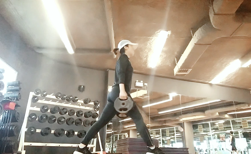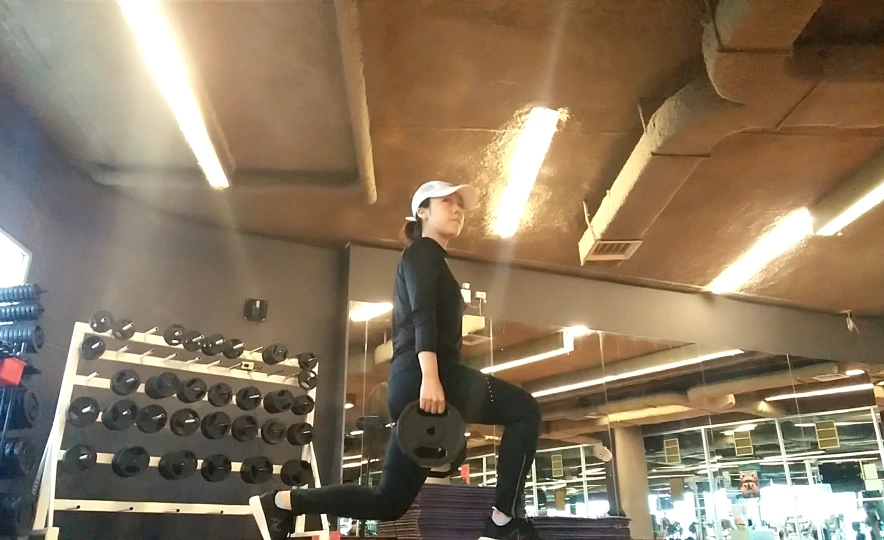 위, 런지 자세 아래, 플랭크자세런지. 허벅지 앞쪽과 뒤쪽, 엉덩이에 힘이 들어간다. 무릎이 발끝을 넘지 않아야 하고 최대한 바닥 가까이로 앉았다 일어선다.