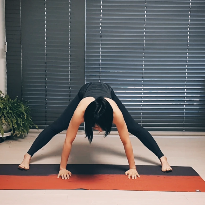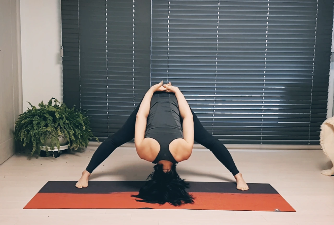 무엇보다 숨을 쉬는 것이 힘들지 않아야 하고 따라서 발을 벌리는 정도를 조절하거나 손을 바닥에 짚어서 가능하면 무리하지 않게 한다.