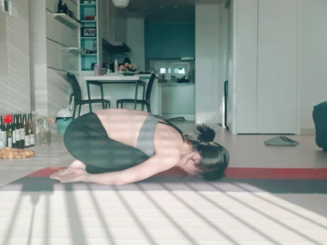 오른쪽 다리는 편다. 왼쪽 다리는 구부려 뒤꿈치가 회음부에 닿게 한다.