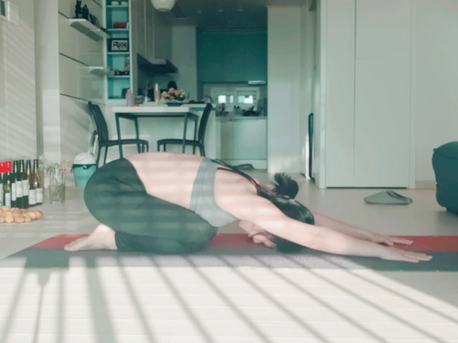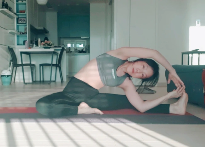 편 다리를 무리하게 뻗기보다 햄스트링이 약간 뻐근할 정도로 무릎을 조정한다.