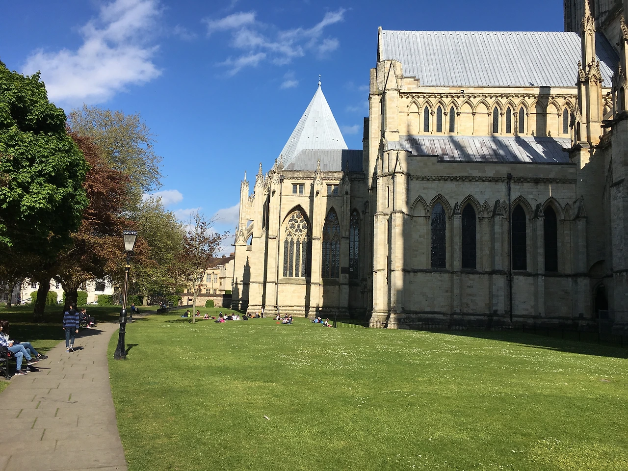 날씨가 좋아서 사진이 잘 나왔다. 요크민스터의 옆모습이다. 풀밭을 거닐며 이런저런 상념에 빠졌다. 갑자기 들이친 햇살이라 사람들은 온몸에 햇살을 비추게 만들었다. 요크민스터에 돈을 내고 들어가 관광을 해봤지만 정말 대단했다. 어찌 사람들이 이런 것을 만들 수 있었는지 감탄의 연속이었다. 석조상들과 유리 모자이크 같은 것들이 중세미술의 결정체를 보여주었다.