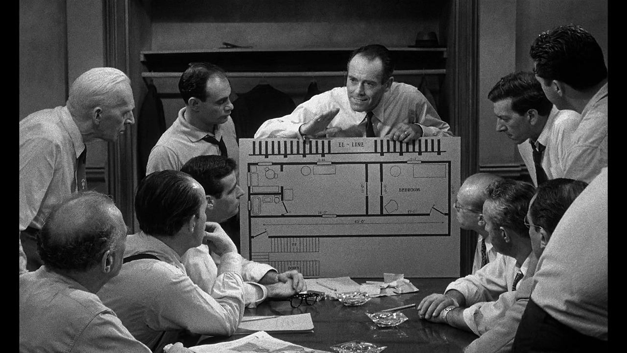 하지만 이왕 가공의 이야기인 이상, 영화는 스스로 배심제의 허점을 짚는 동시에 8번 배심원을 통해 합리적 의심(Reasonable Doubt)의 중요성 또한 강력하게 환기시킨다. 8번 배심원은 하나의 사건을 둘러싼 모든 것, 즉 피고인, 정황 증거, 재판 과정, 심지어 그걸 바라보고 있던 자기 자신의 사고방식이 틀렸을 수도 있다는 것까지 모든 가능성을 열어둔다. 그리고 그것을 상대방과의 대화와 설득을 통해 풀어내려 한다. 물론 그 역시 수사관이 아니라 건축가일 뿐이니 진실에 도달하는 것은 명백한 한계가 있겠지만, 최소한 불명확한 집단 심리에 의한 의심이 아닌 구체적인 근거를 통한 토론으로 편견을 타파할 수 있게 된다.