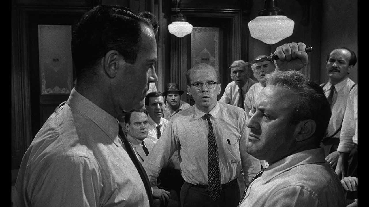 배심 과정이 절정으로 치닫는 장면 중 하나는 6 대 6, 즉 동률의 상황에서 무죄의 주창자인 8번과 유죄를 고수하는 3번의 대립이 화면으로 표출되는 순간이다. 그간의 대립을 시각화하듯 정말 칼로 찌르기라도 할 듯한 잠시의 서스펜스 이후, 소년처럼 빈민가 출신인 5번 배심원의 잭나이프 기술 재연으로 범죄 혐의가 옅어진다. 여기서 놓치기 쉬운 것은 6 대 6에서 7 대 5라는, 역전의 도화선에 불을 붙이는 사람이 아이러니하게도 유무죄 입증에는 관심 없고 나가서 야구 경기나 보고 싶어 했던 7번 배심원이라는 것이다. 구체적인 논증 없이 그저 귀찮다는 이유로 입장을 바꾸는 것 역시, 배심원들이 내린 결론도 결코 모든 면에서는 완벽하지 않다는 점을 영화 스스로 드러내고자 함이다.