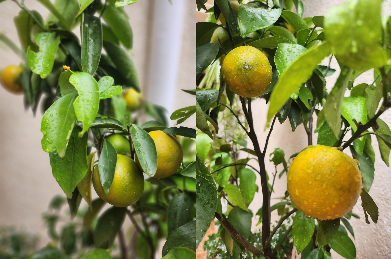 아이들이 작년 11월 데리고온 라임 오렌지가 조롱조롱 맺혀 벌써 풋풋한듯 노랗게 익어가고 있었다.