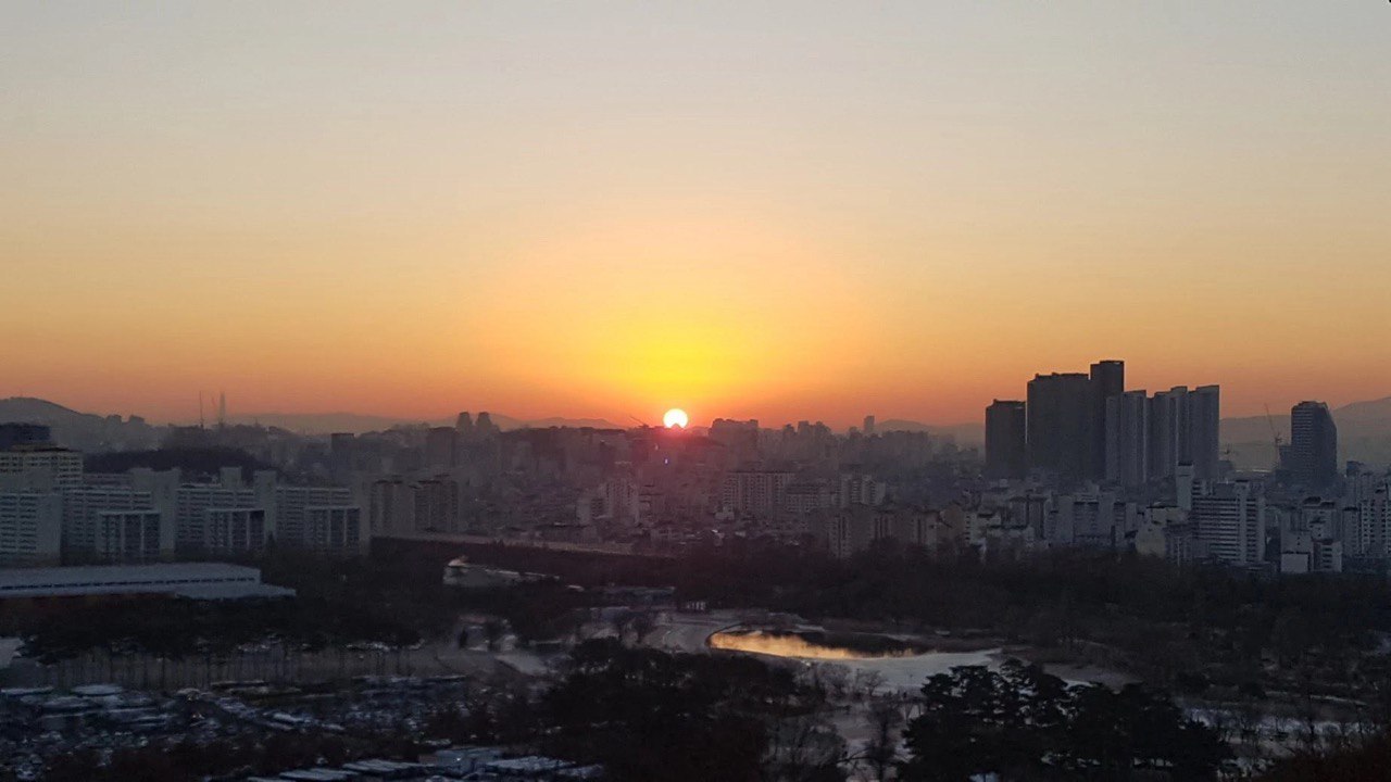 도심에서 보는 일출은 처음이라 어떤 느낌일지 궁금했는데 바다의 일출과 다른 신묘한 느낌이 있었다. 귀농할 거라 입에 달고 사는 내가 서울남자를 만나 서울에 정착하는 것을 확인시켜 주는 것 같았다.