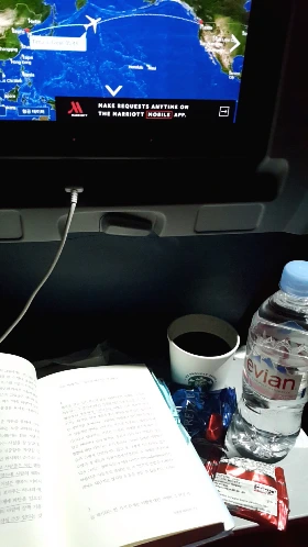 저는 비행기를 타고 긴 시간을 비행하게 되는 날이면 여행 짐을 싸면서 꼭 비행 시간을 알차게 보낼 만반의 준비도 같이 하곤 합니다. 책과 메모장을 꼭 챙겨놓고, 노트북도 충전시켜 놓고요. 비행기 영화는 보통 화질이 좋지 않거나 안내방송이 나오기라도 하면 몰입이 방해되는 탓에 저는 비행기에서 주로 책을 읽는 편입니다.