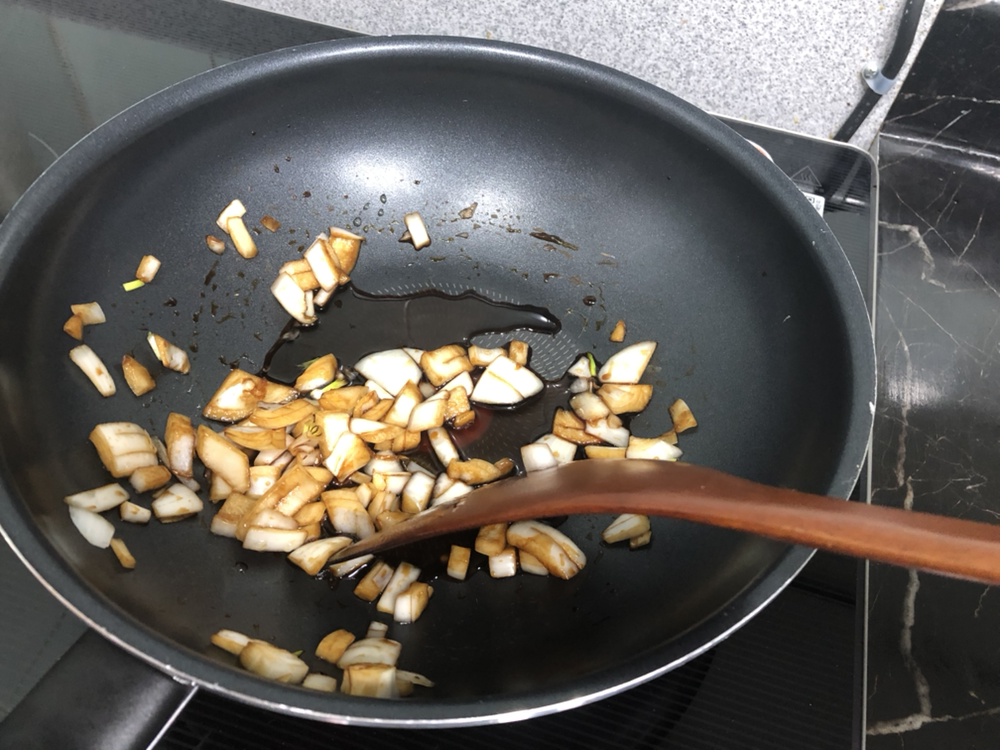 간장 4숟갈과 맛술 2숟갈 올리고당 2숟갈을 넣고 볶아준다. 우리집엔 맛술이 없어서 올리고당만 넣었다. 왠지 설탕으로 간을 맞춰도 될듯.