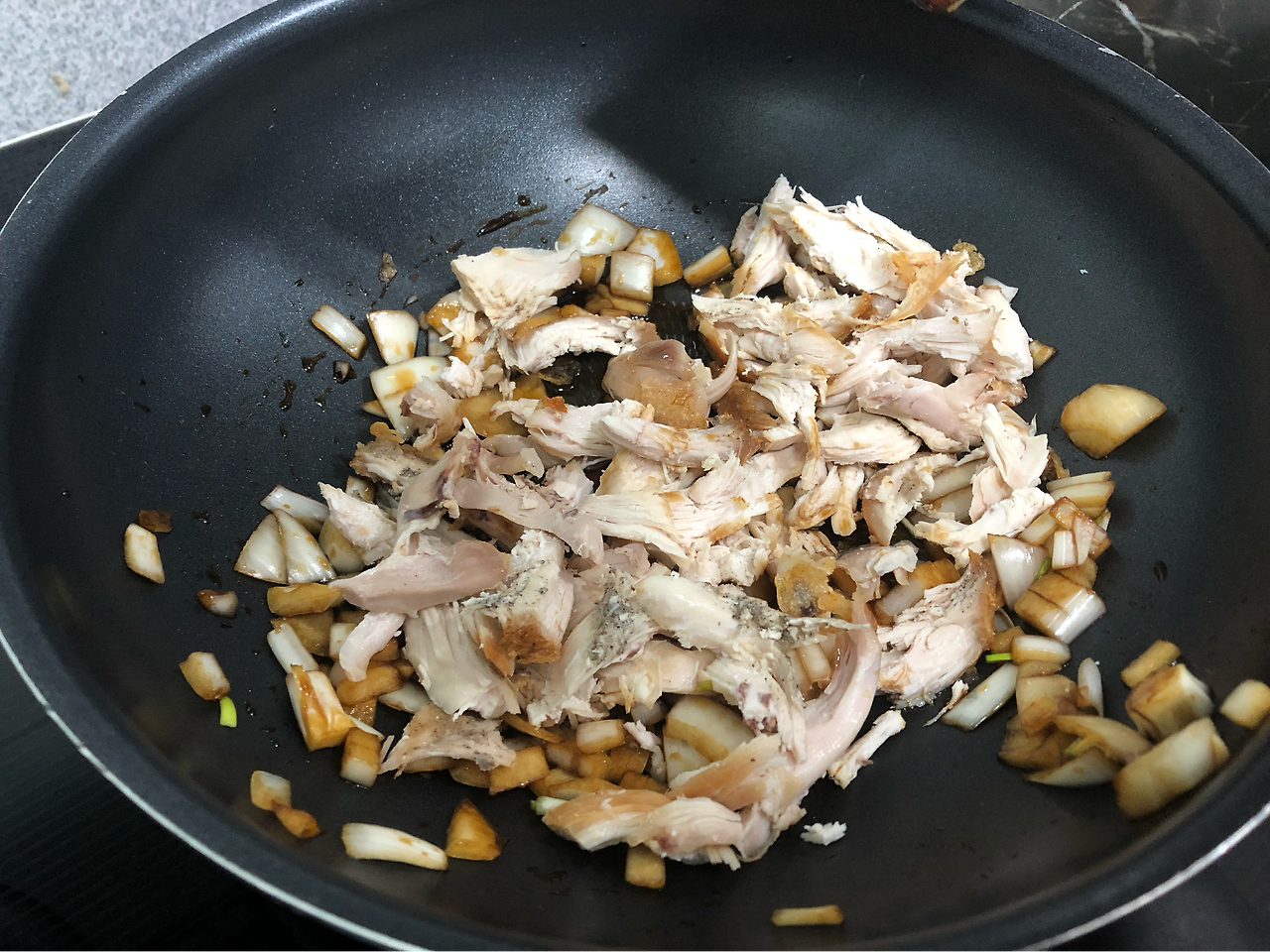 닭을 이쁘게 찢어놓는다. 살코기만 남겨놓으니 양이 꽤 된다. 역시 먹을거는 버리면 안돼.