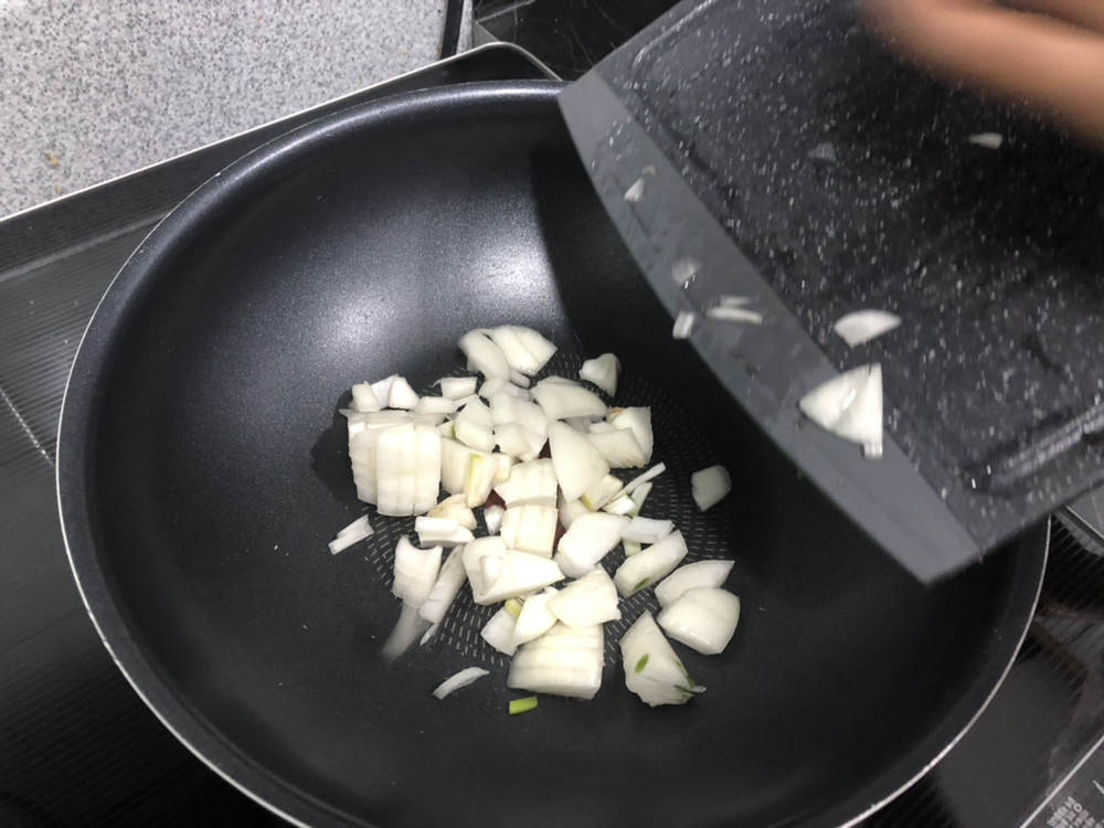 양파 한개를 송송 썰어서 좀 볶아준다. 양파는 정말 결혼하고 새롭게 알게 된 맛. 요리마다 들어가는듯.
