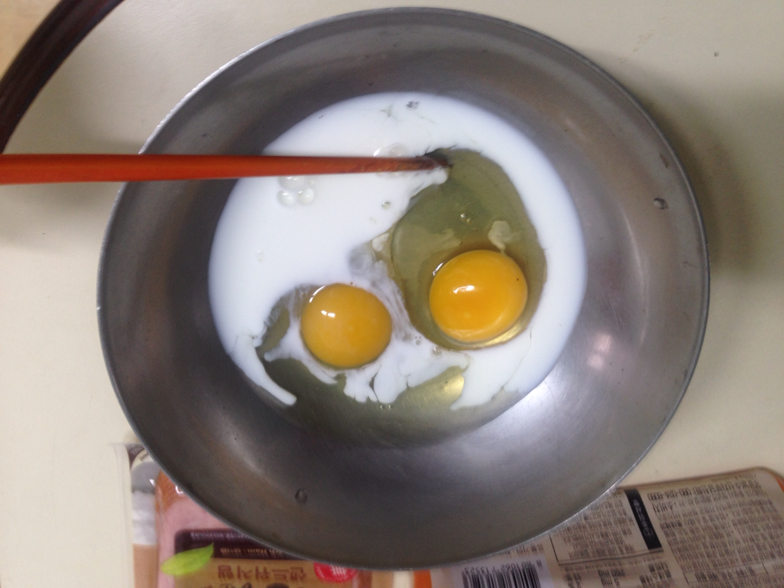 먼저 달걀을 풀어준다. 어디서 본적은 있어서 우유를 조금 넣어본다. 실험이다.