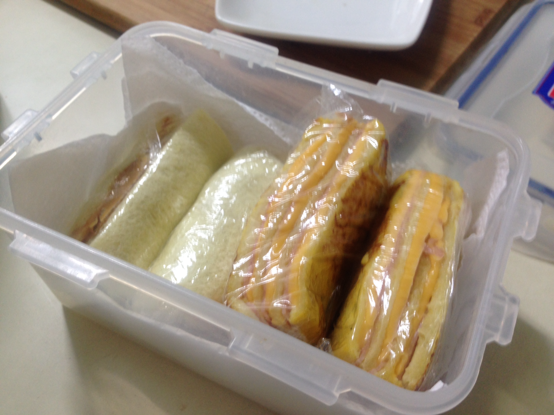 토스트를 그럴듯하게 잘라두면 이런 모양이 된다. 맛은 어떨지. 지금까지 요리시간은 총 20분이 걸렸다. 이제 30분 준비하고 나가면 딱 12시!