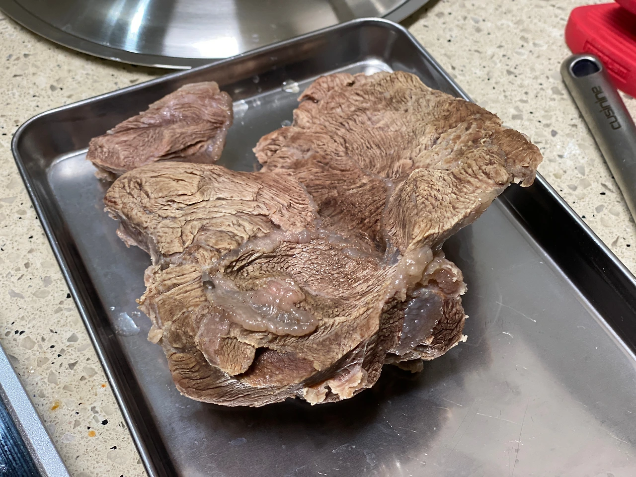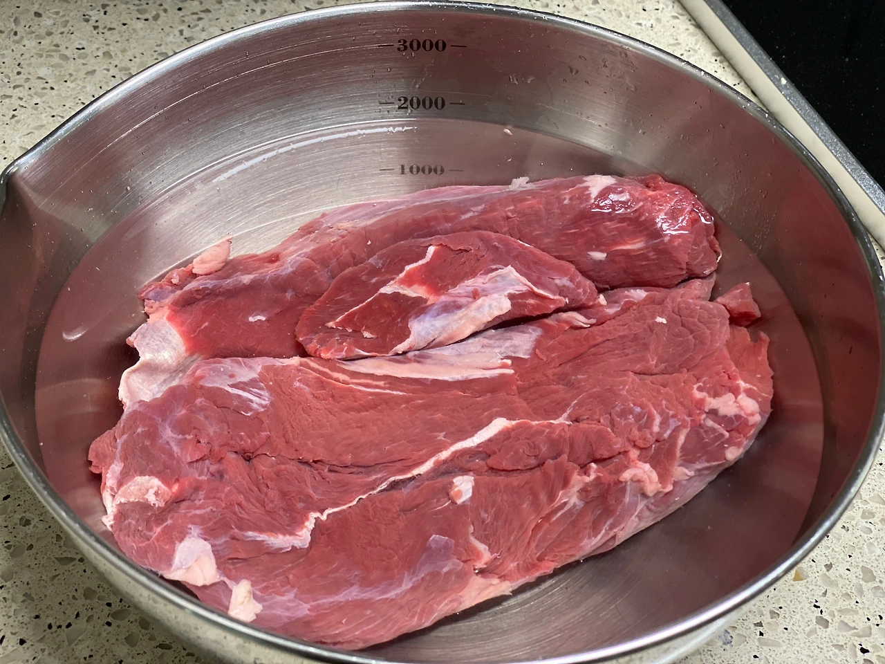 아롱사태는 소의 앞다리 뒷다리 부분이다. 근육량이 많아 힘줄이 많은 부위. 지방 부위가 적으면서 쫄깃한 식감. 이거다 했다. 먼저 아롱사태를 물에 담궈 핏물을 빼준다. 30분에서 1시간 정도.