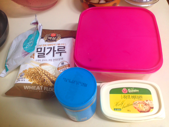 준비물이다. 땅콩버터가 핵이다. 그리고 버터. 설탕. 밀가루. 베이킹파우더. 달걀.
